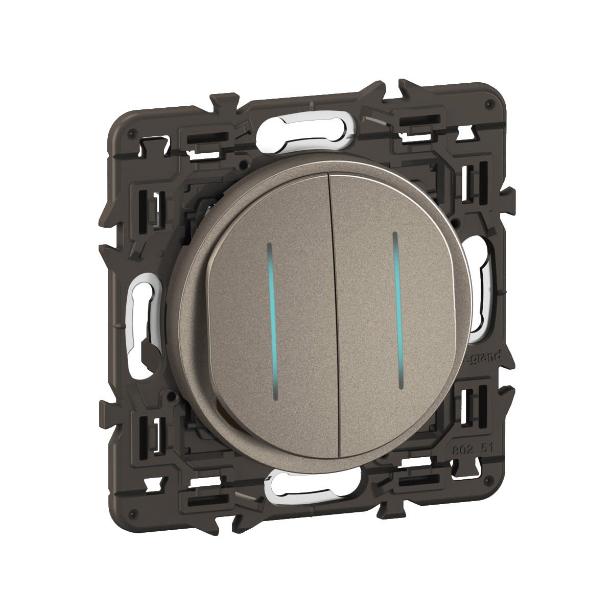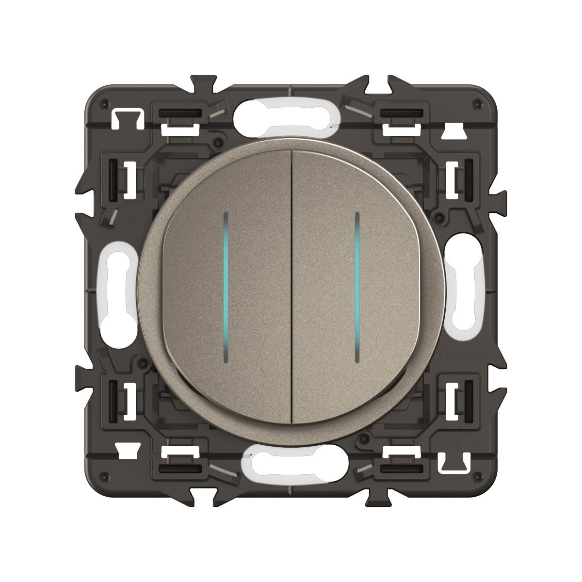 Legrand - Double interrupteur témoin Céliane 10AX enjoliveur Titanium, support et voyant - CY4001