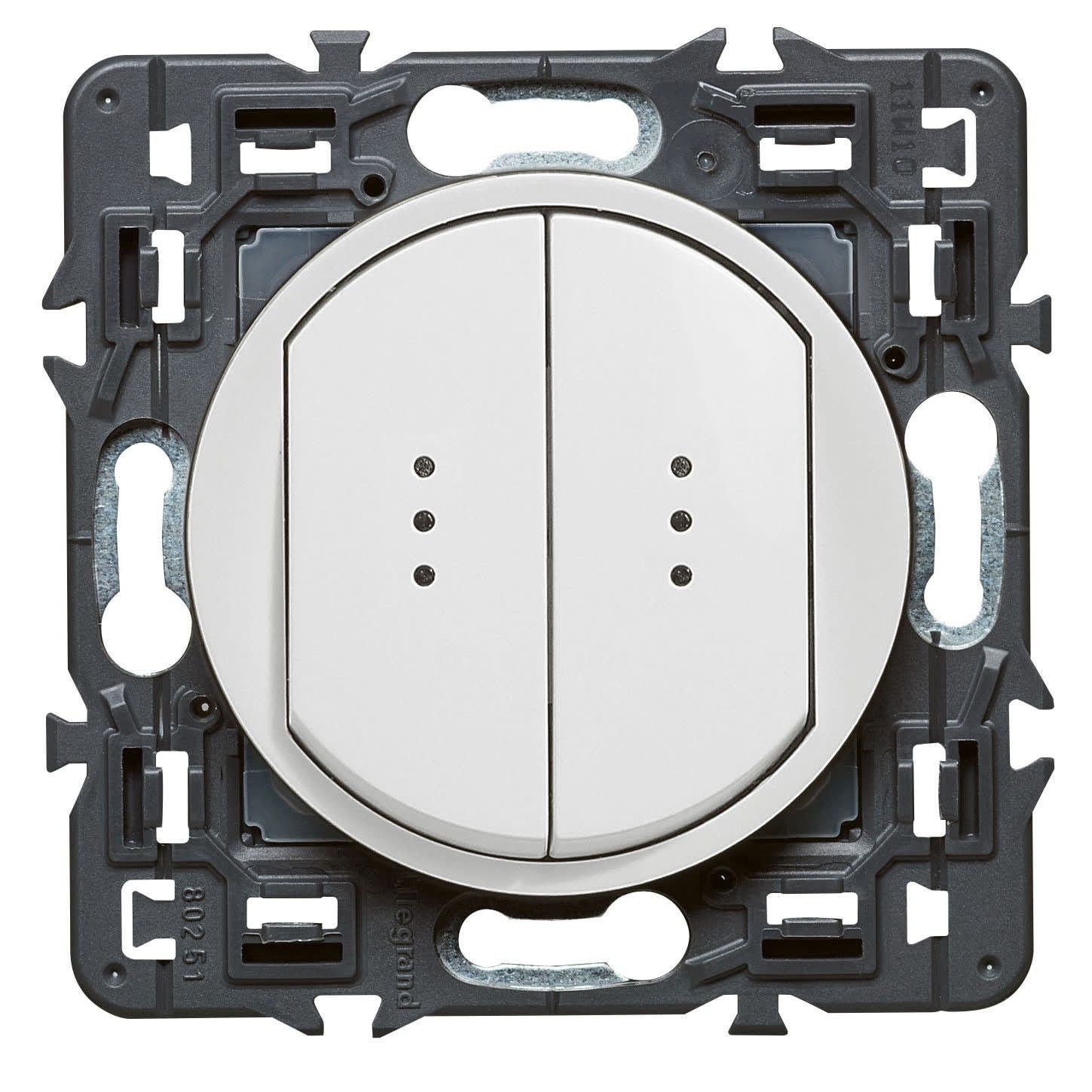 Legrand - Double interrupteur témoin (voyant fourni) Céliane Soft - 10A - Blanc - 099505