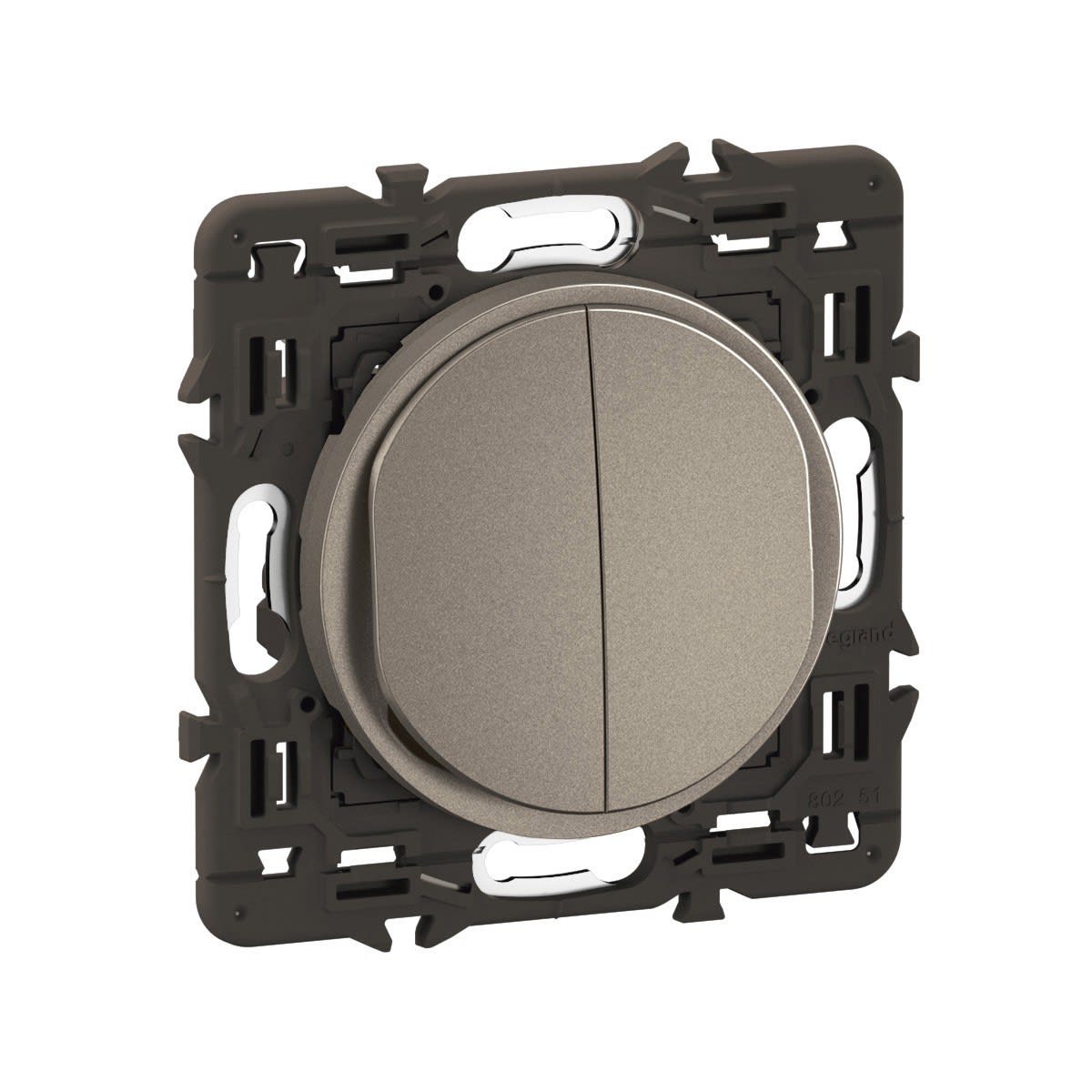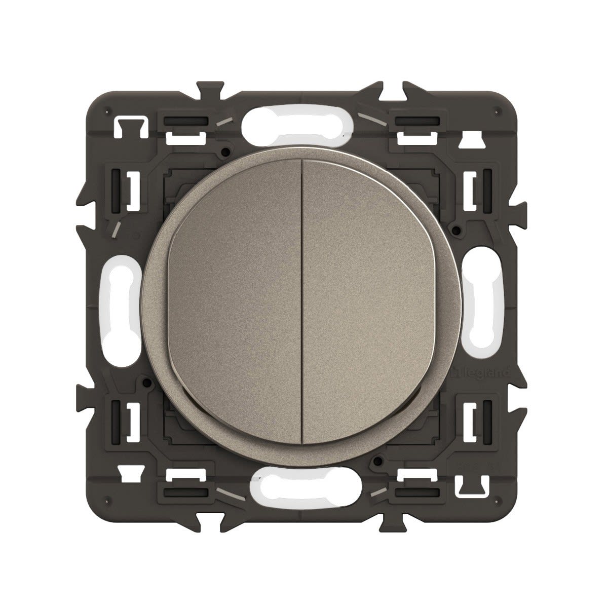 Legrand - Double poussoir inverseur Céliane 6A enjoliveur Titanium et support - CY2031