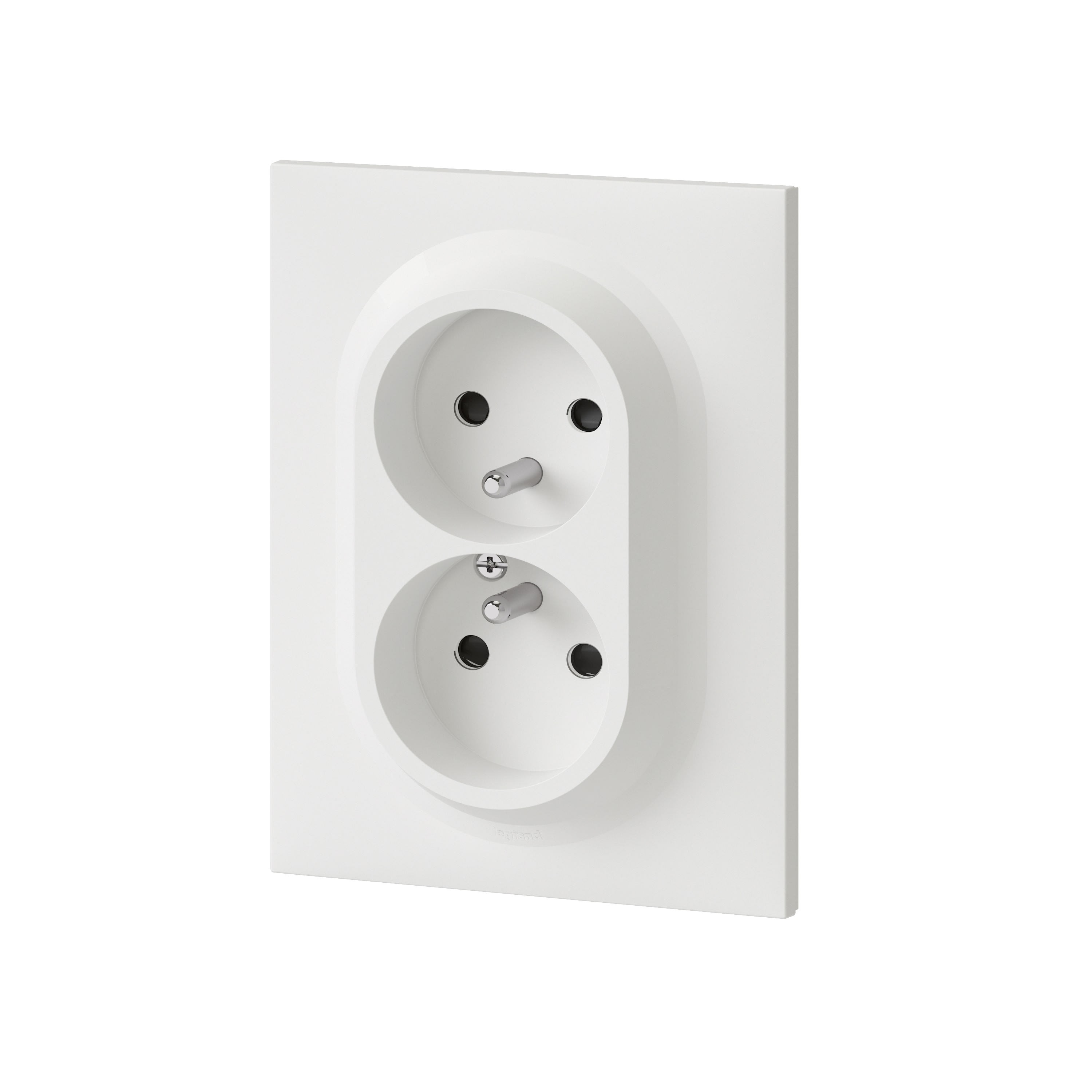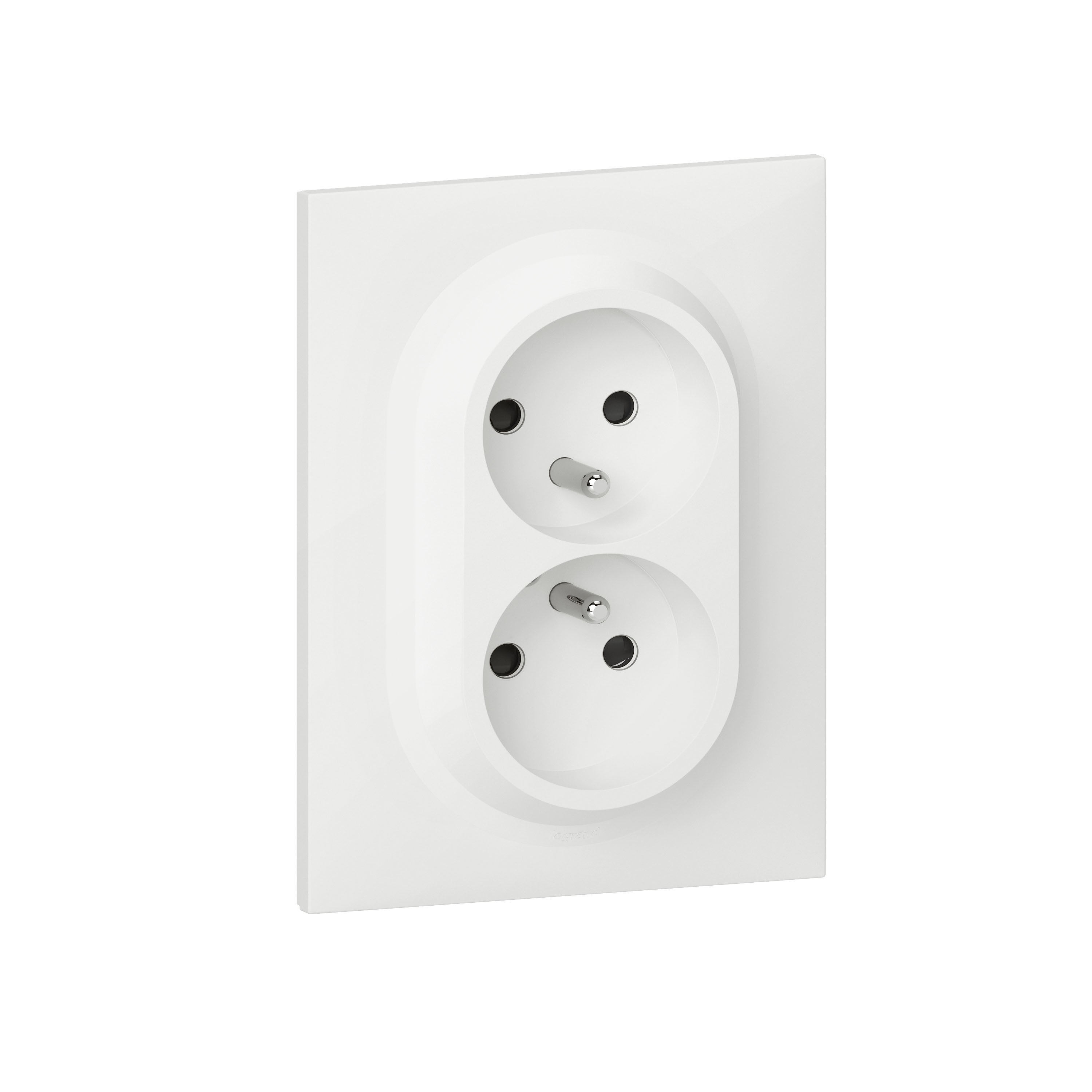 Prise de courant 2x2P+T compacte monobloc easyréno 16A dooxie One Mécanisme livré avec des griffes facilitant la pose en rénovation Livrée avec coque de protection chantier à charnières qui protège le produit de la poussière et des éclaboussures de peinture et permet au mécanisme de rester utilisable pendant le chantier Les éclips de protection enfant de cette prise renforcent la sécurité dans la maison en permettant d'obturer le contact électrique en l'absence de fiche Repérage des bornes facilitant le câblage - Bornes automatiques permettant la connexion rapide sans outil