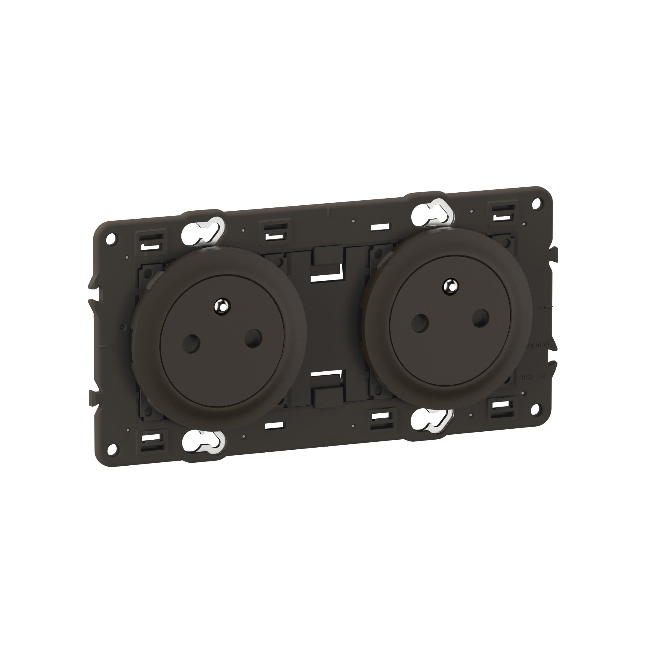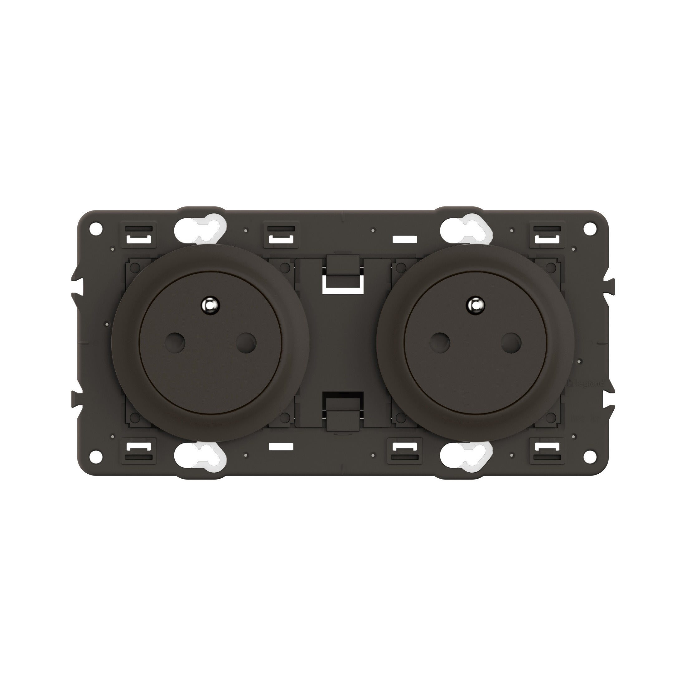 Double prise 2P+T précâblée Surface Confort Céliane - livrée avec enjoliveurs Noir et support montés, à équiper d'une plaque de finition 2 postes