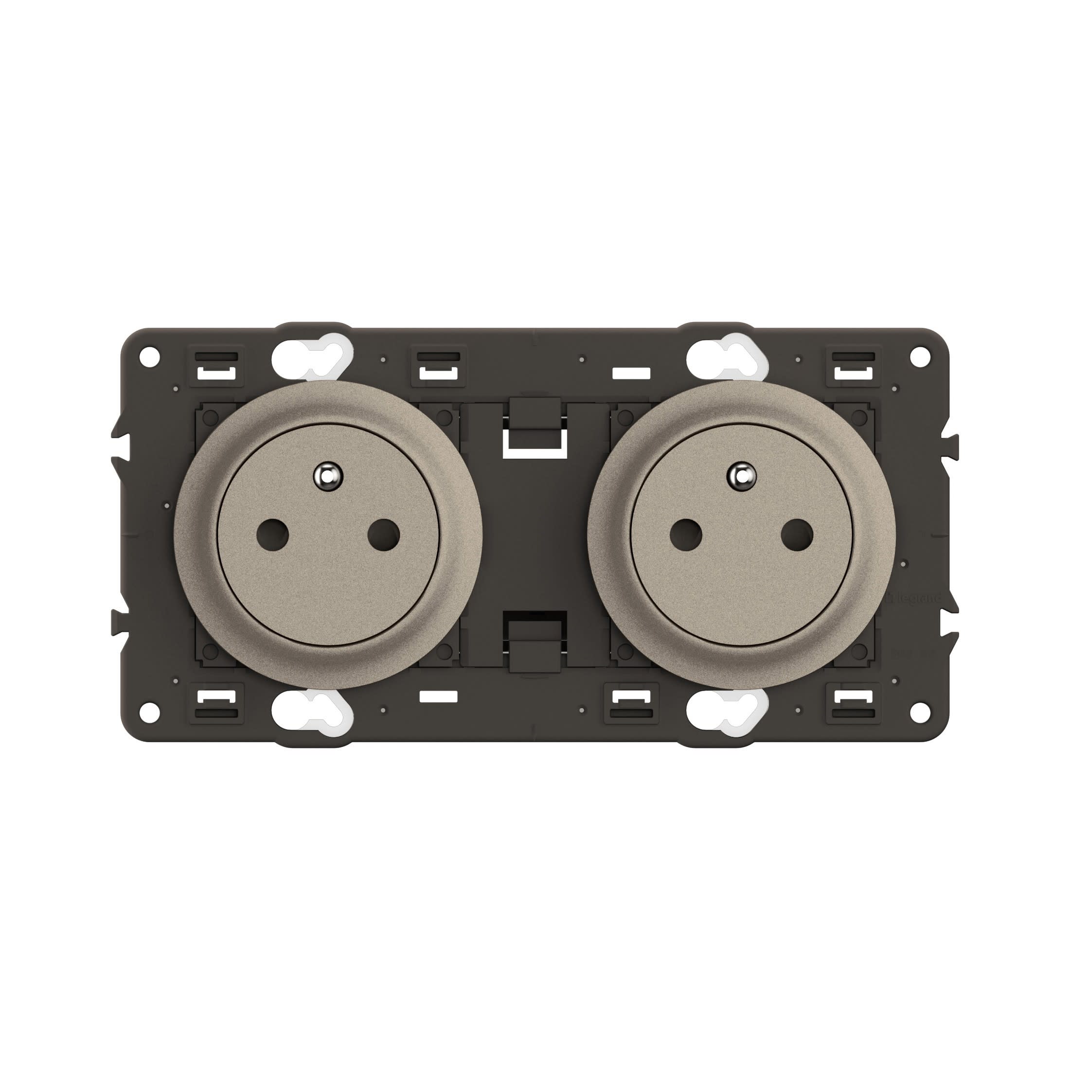 Legrand - Double prise 2P+T Surface Céliane précâblée enjoliveurs Titanium et support - CY0112