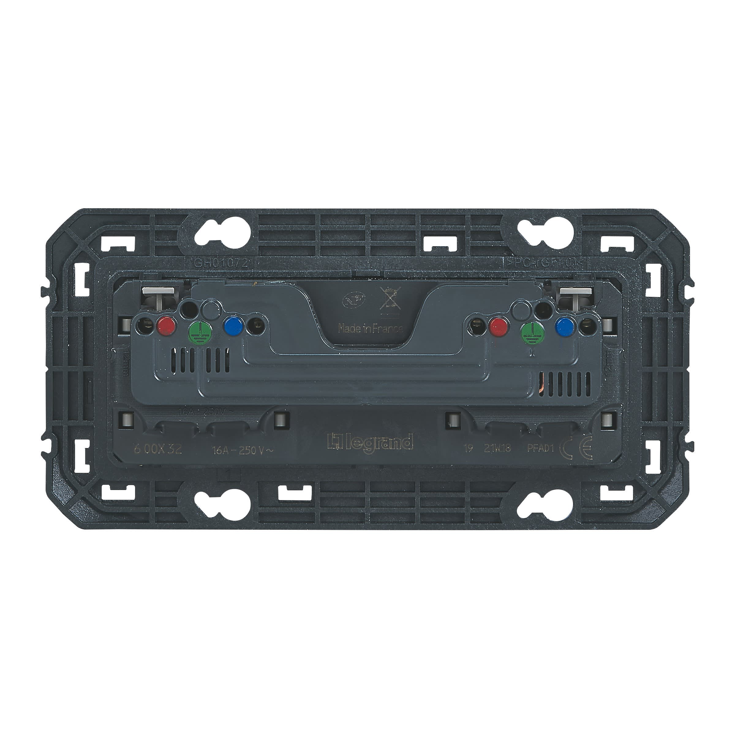 Bornes automatiques permettant la connexion rapide sans outil Repérage des bornes facilitant le câblage Standard franco-belge, 16A, 230V 2 postes