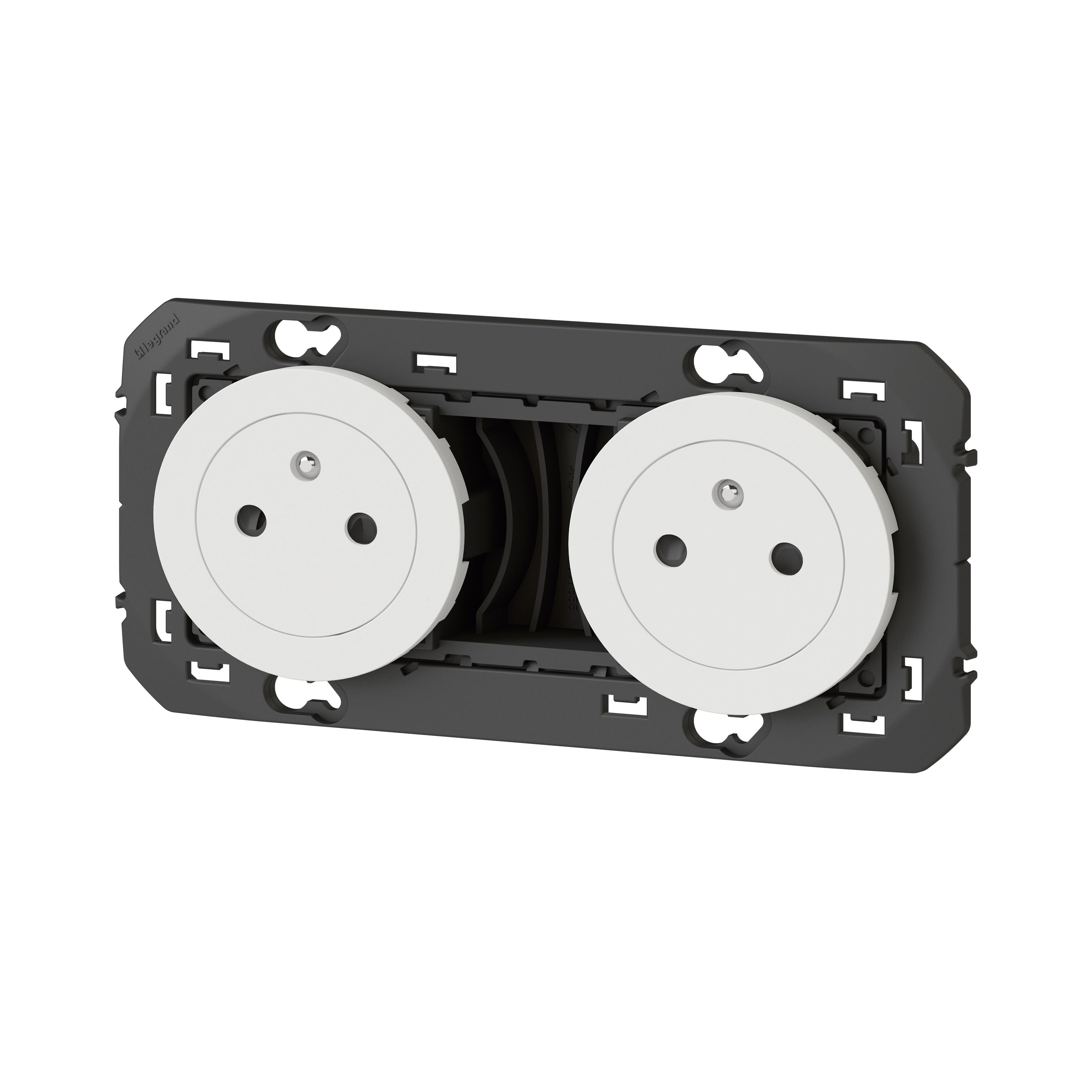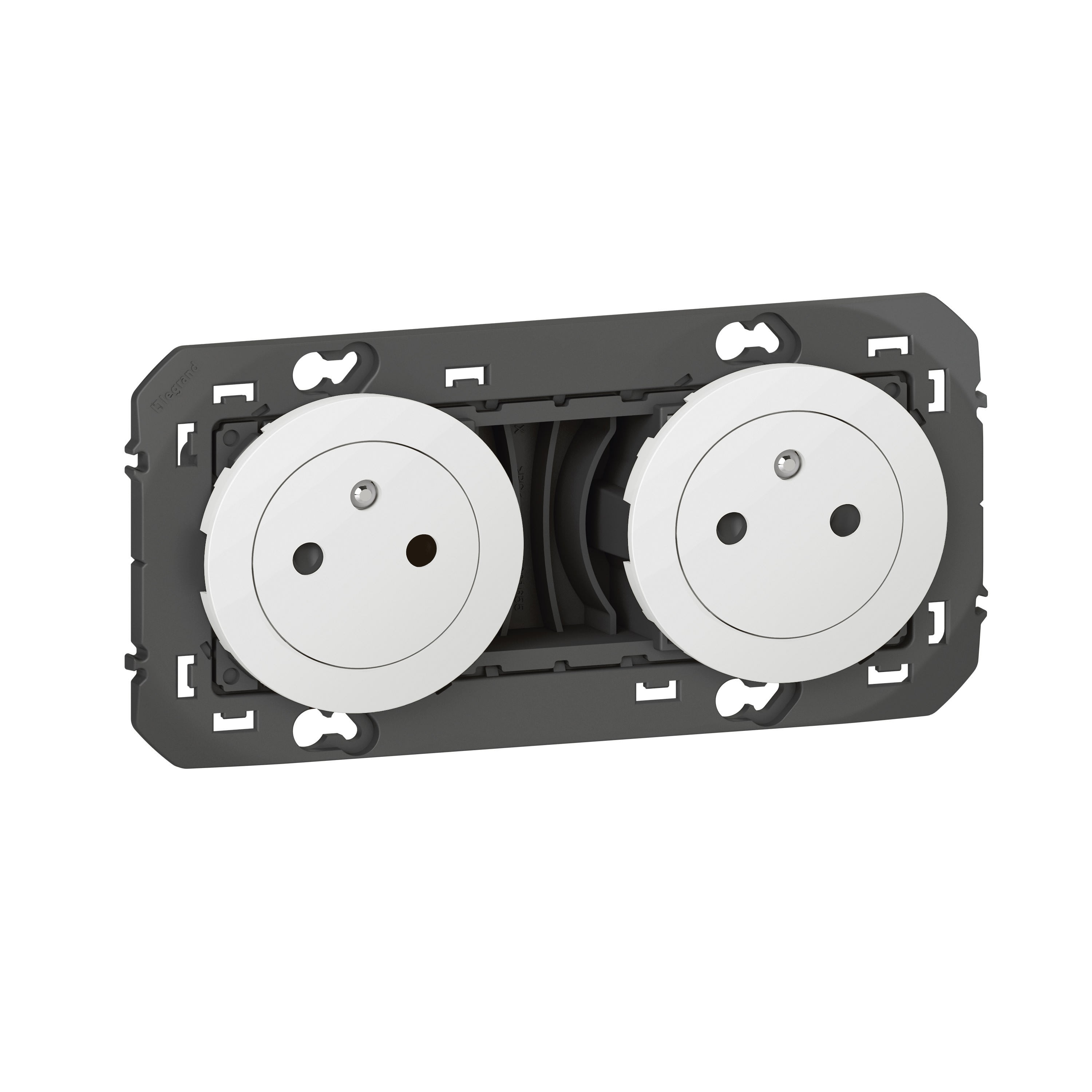 Double prise de courant 2x2P+T Surface précâblées dooxie 16A 230V~ à raccordement par bornes automatiques - livrée avec support et enjoliveur blanc, à équiper de plaque de finition