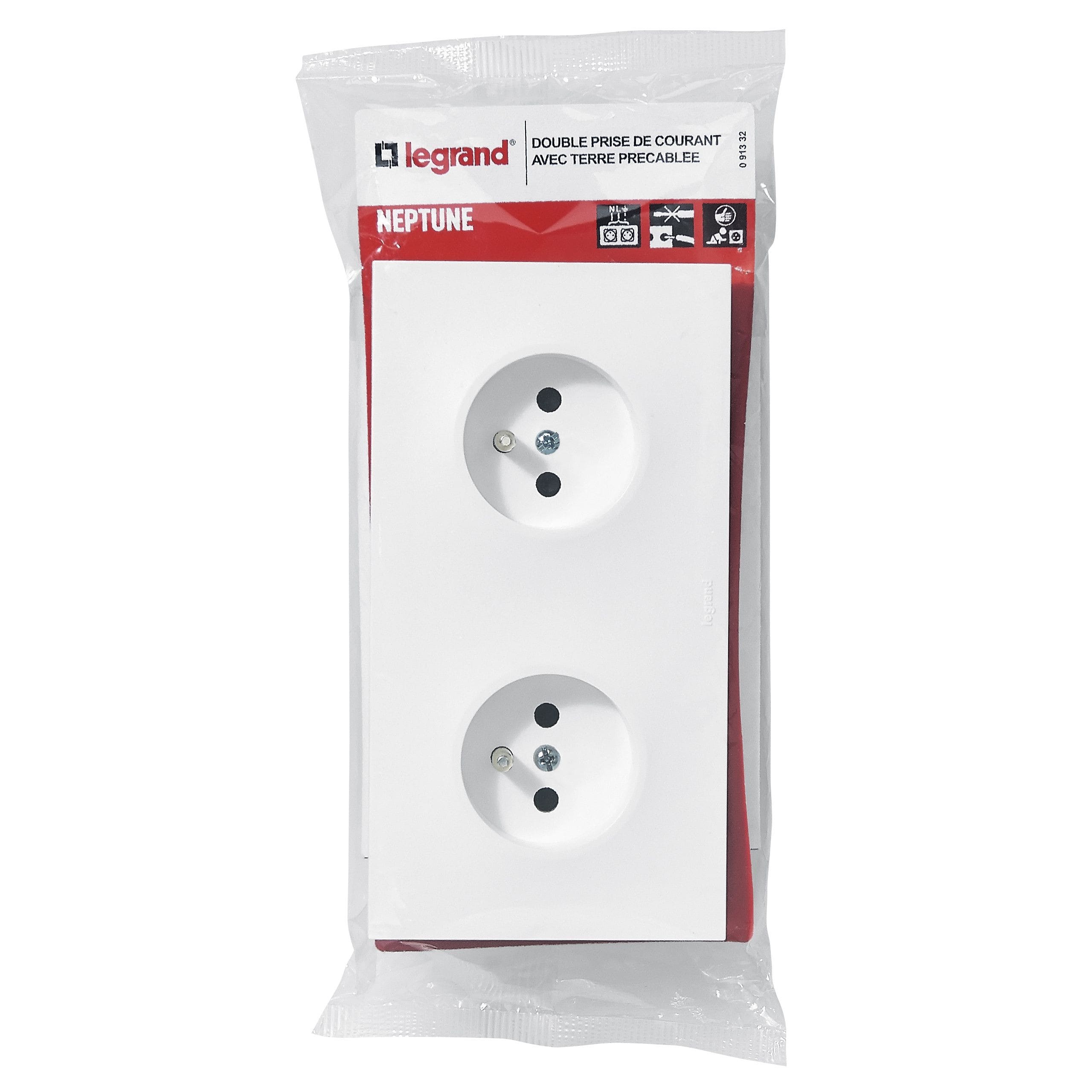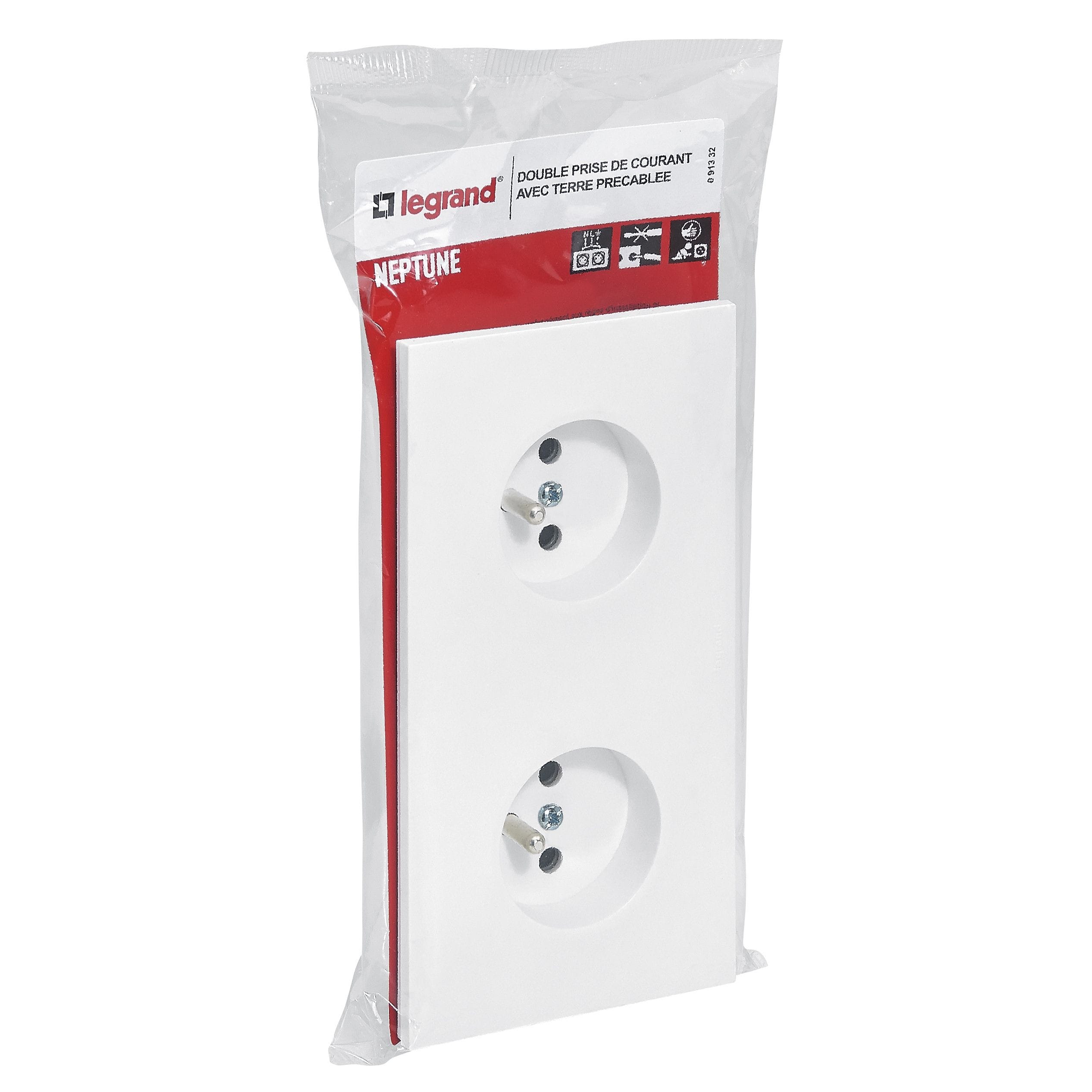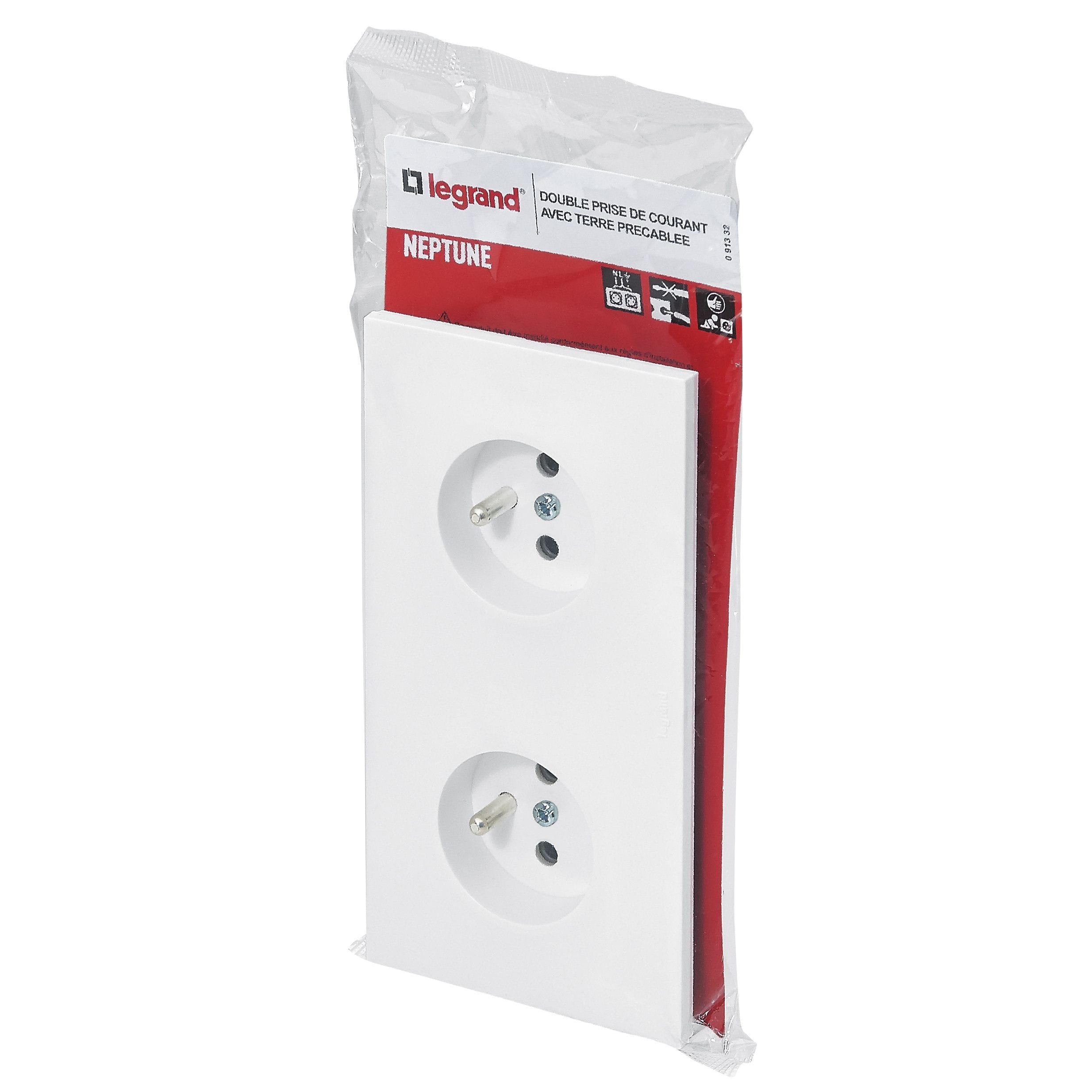 Legrand - Double prise de courant avec terre précâblée Neptune 16A - blanc - 091332