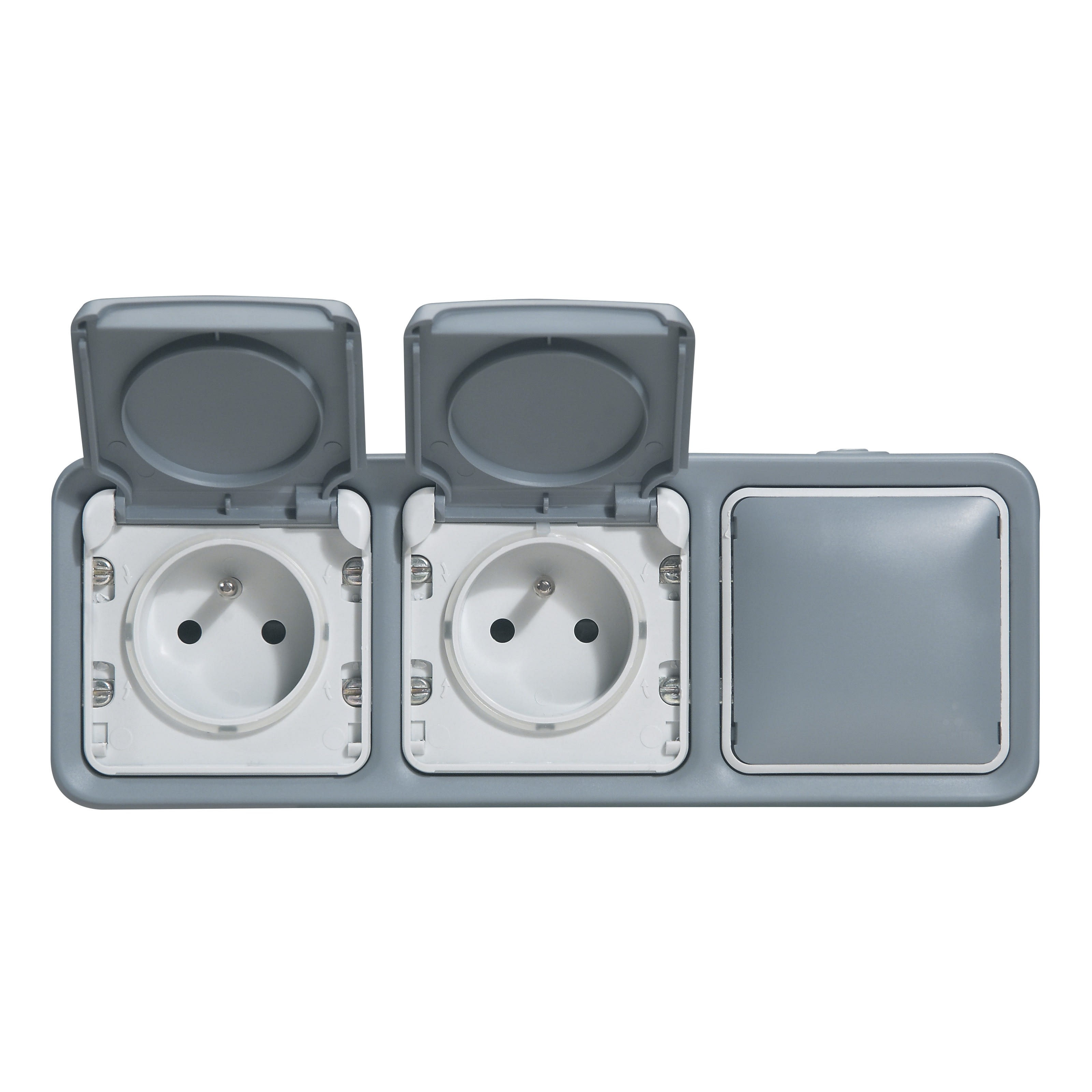 Legrand - Double prise de courant + obturateur Plexo complet apparent - Gris - 069909