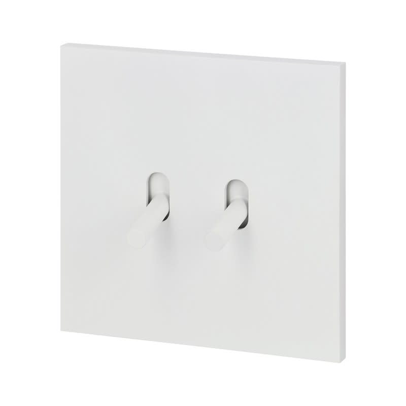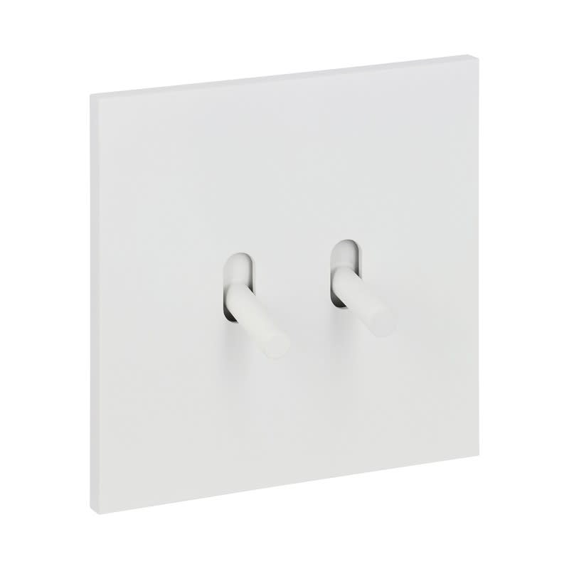 Double va-et-vient 10A à levier cylindrique Art d'Arnould Univers Epure Blanc satin Leviers blancs Dimensions grand carrée 80x80mm Se monte dans boîte d'encastrement 1 poste