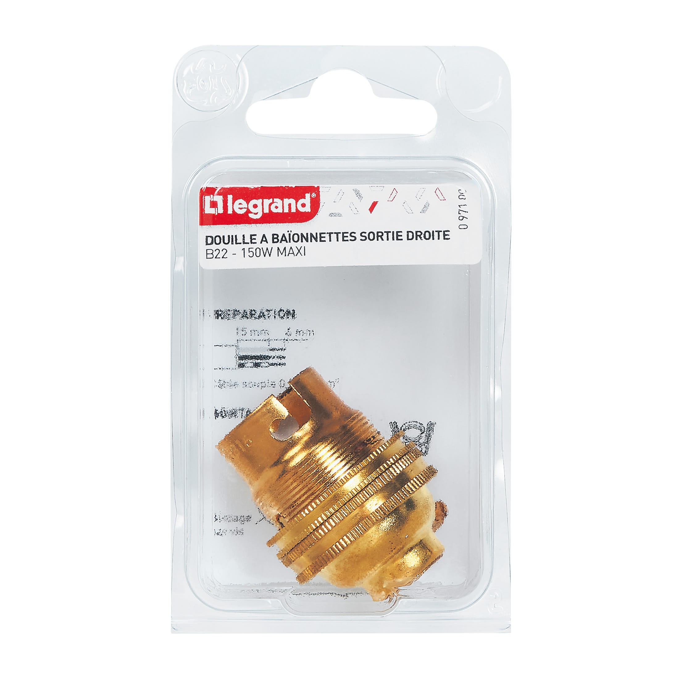 Legrand - Douille pour ampoule B22 - avec bague - sortie de câble latérale - laiton - 097103