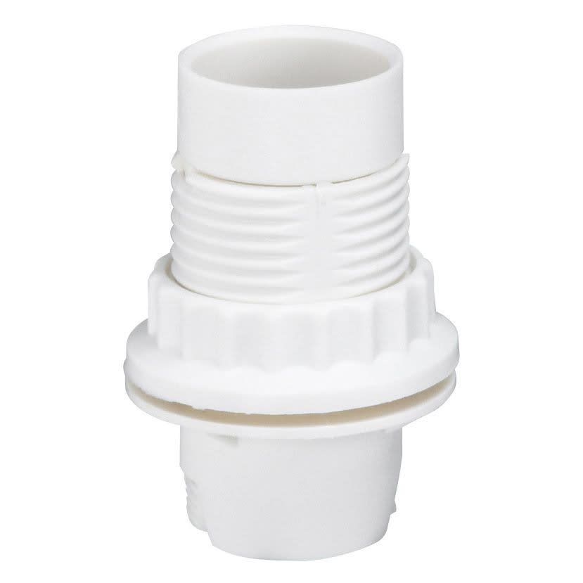 Bague pour abat-jour, matière polyamide blanc - arrivée du fil par le côté ou par le raccord à vis. Douille pour ampoules à vis Ø 14 mm (E 14). Installation sur raccord mâle Ø 10. Puissance lampe : 60 W maximum. . Douille E14. Blanc. Blanc.
