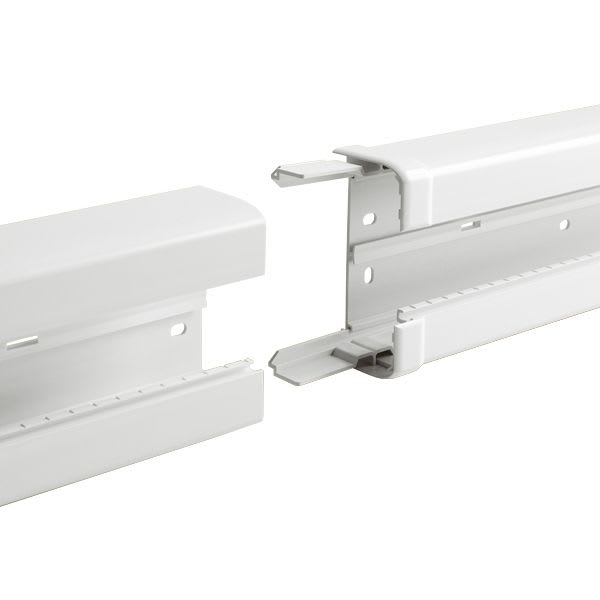 Eclisse de jonction à joint de corps intégré pour goulotte Mosaic à clippage direct 50x105mm Permet le respect de l'indice de protection Coloris : blanc Conforme à la norme NF EN 50085-2-1