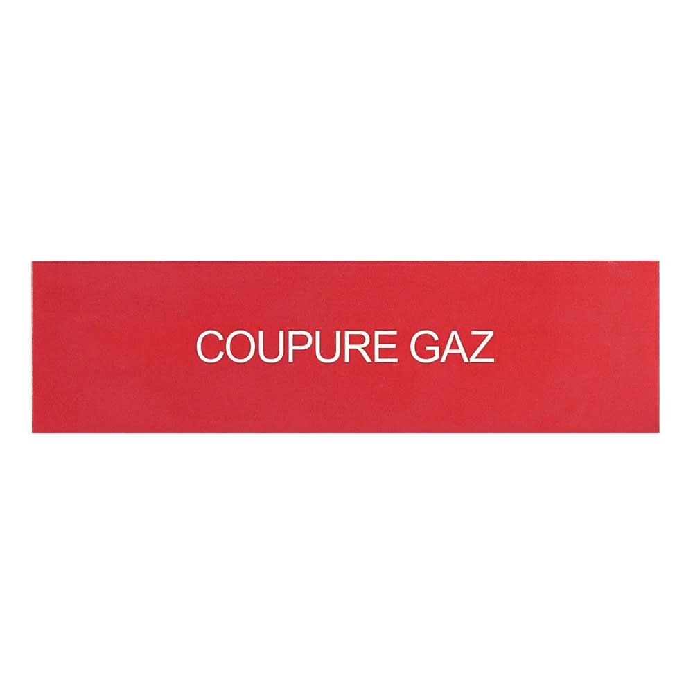 Lot de 3 étiquettes autocollantes pour coffrets de sécurité avec gravure ‘’coupure gaz’’ blanche sur fond rouge Pour coffrets références 038000, 038001, 038002, 038003, 038009, 038011, 038024, 038059 et 038061