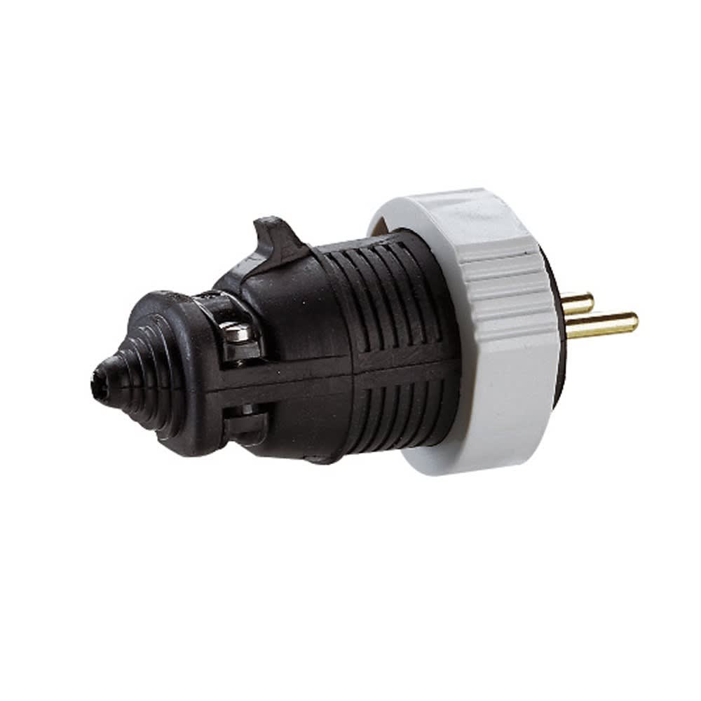 Fiche 2P+T - Martin Lunel - IP65 6A : Ø4mm - 10A - 16A : Ø4,8mm - à sortie droite - Matière caoutchouc - pour câble Etanchéité renforcée par bague de verrouillage