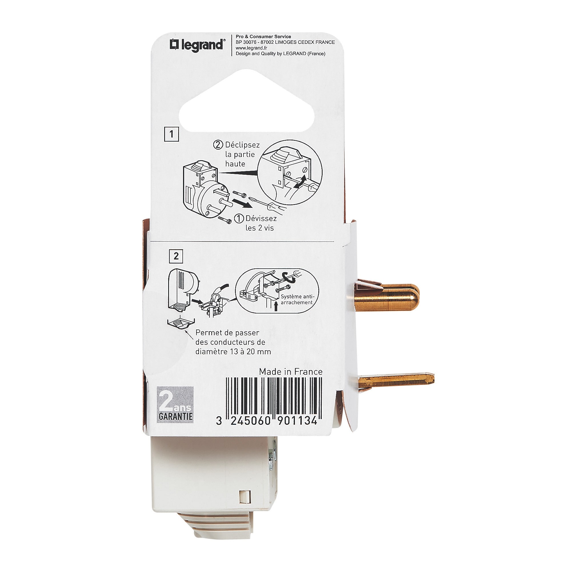 Legrand - Fiche de puissance mâle 20A -sortie câble par dessous -2 broches -blister -blanc - 090113