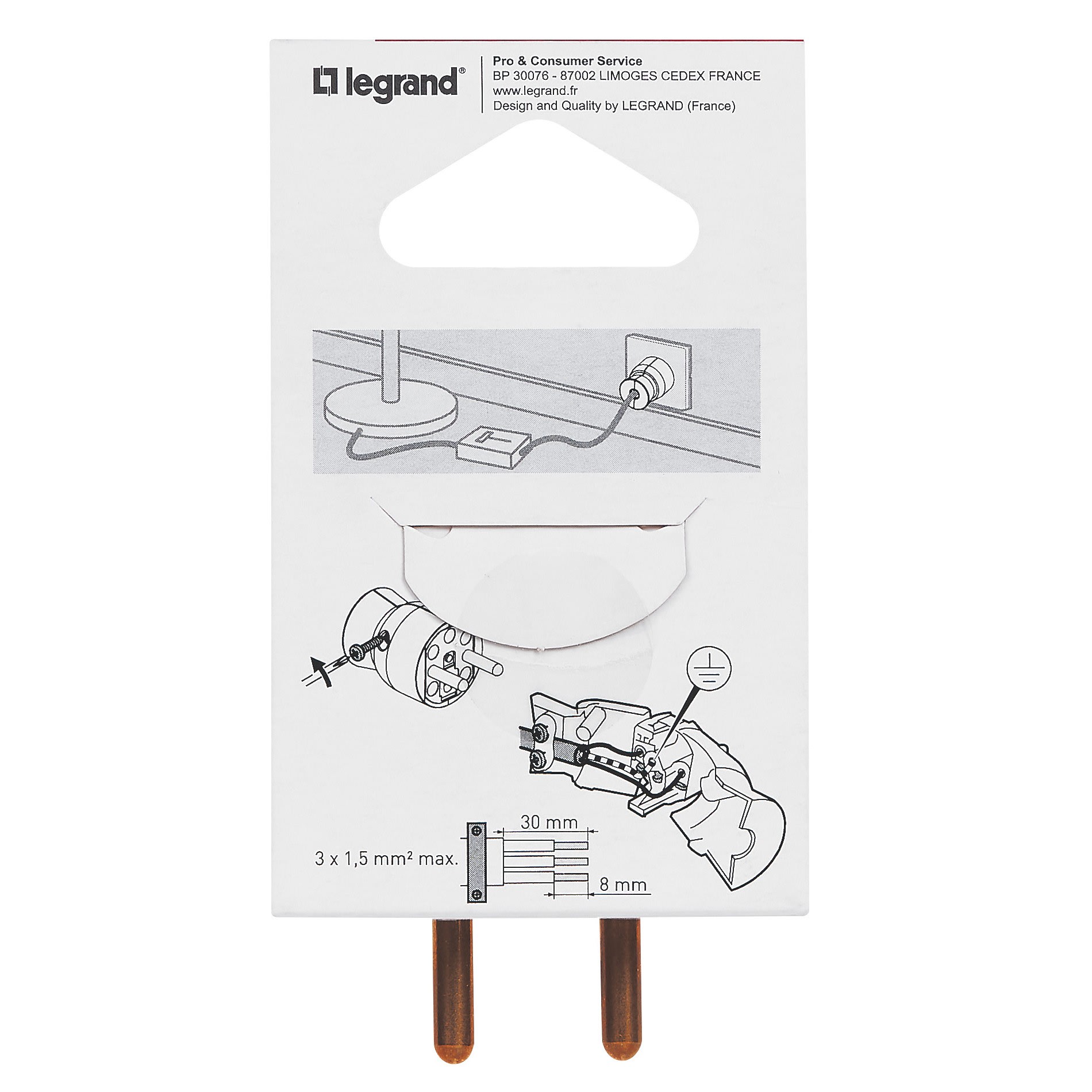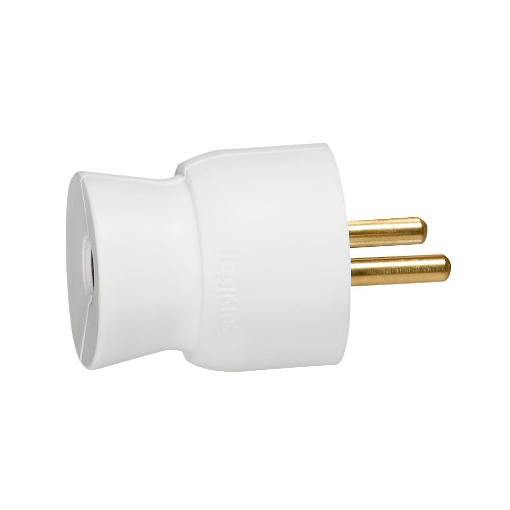 Legrand - Fiche mâle avec terre plastique - sortie du câble par l'arrière - blister -blanc - 093900