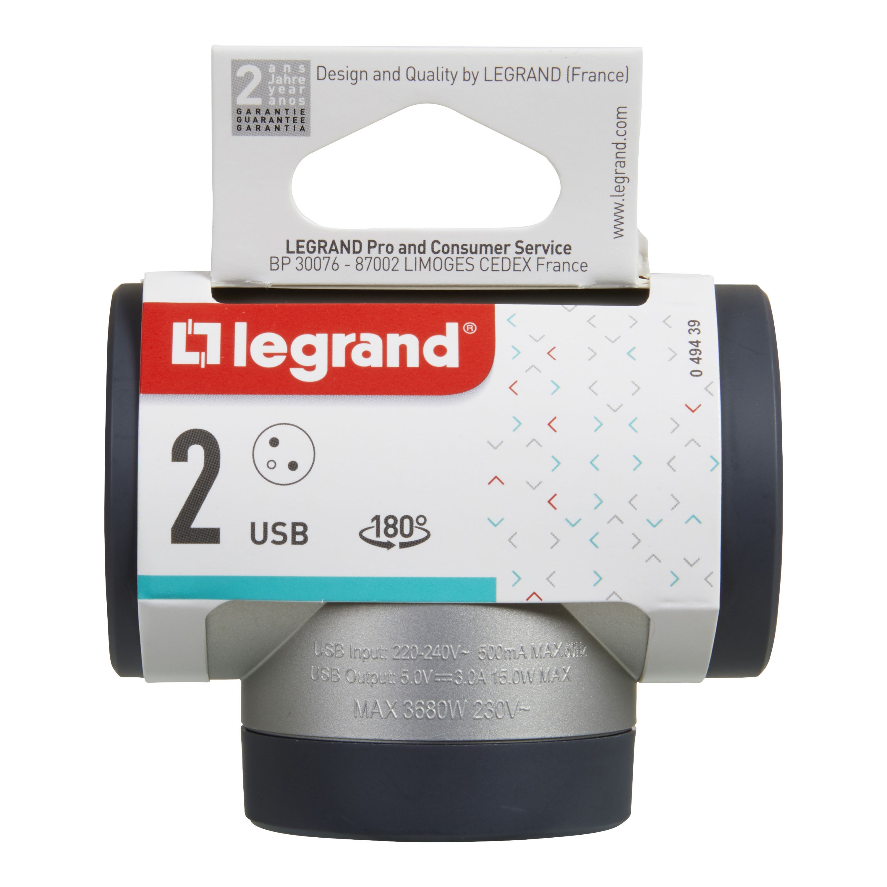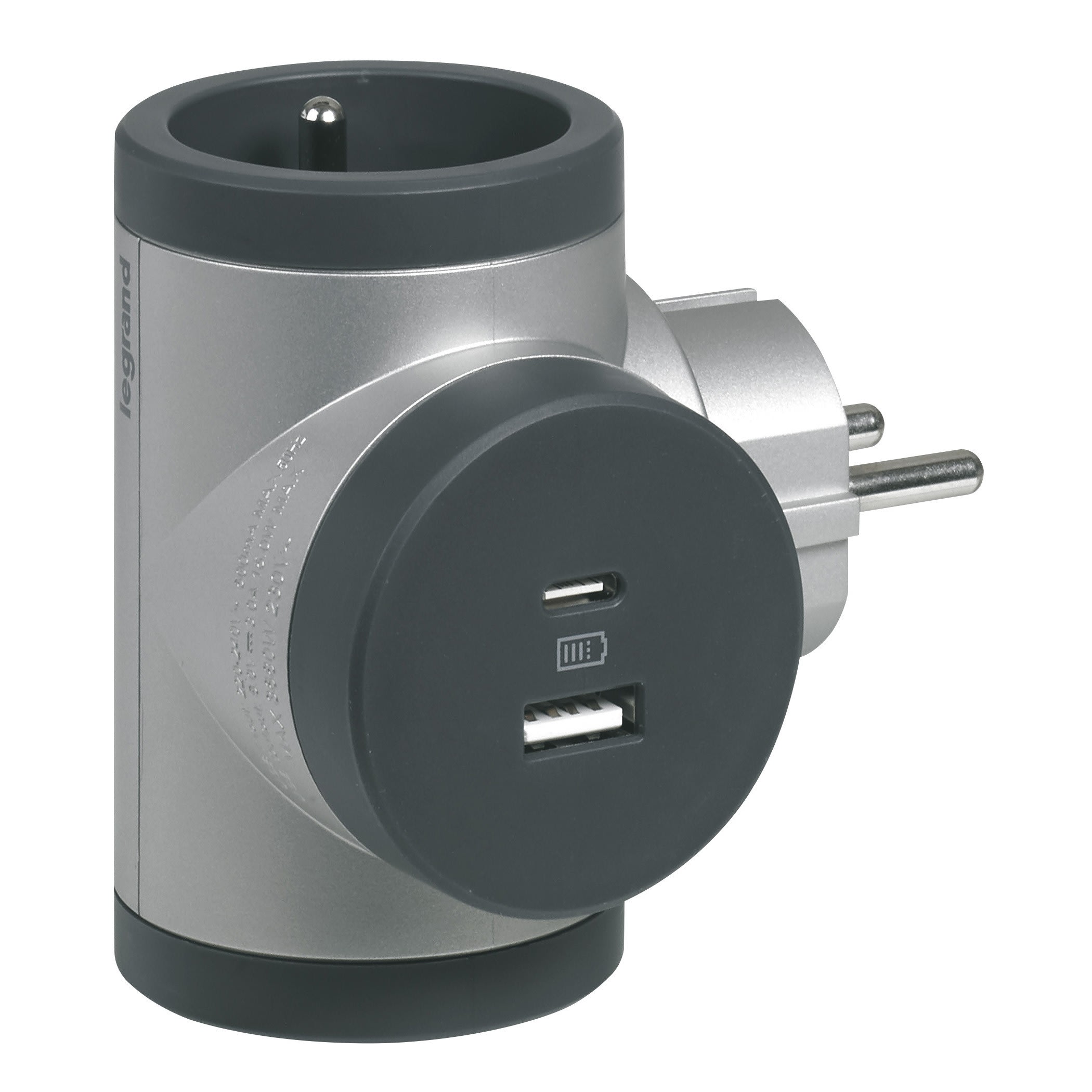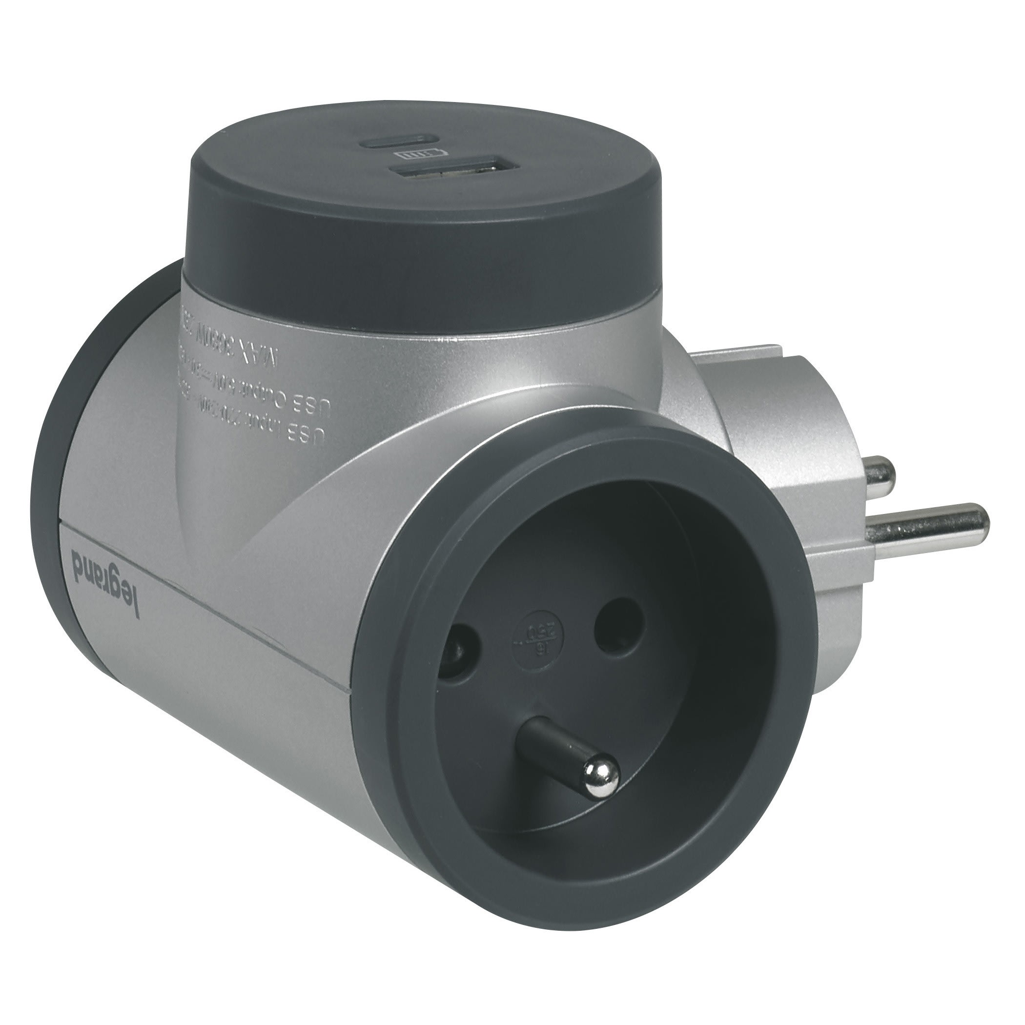 Legrand - Fiche rotative 2x2P+T latérales 16A 230V 3680W avec USB A+C - alu/gris foncé - 049439