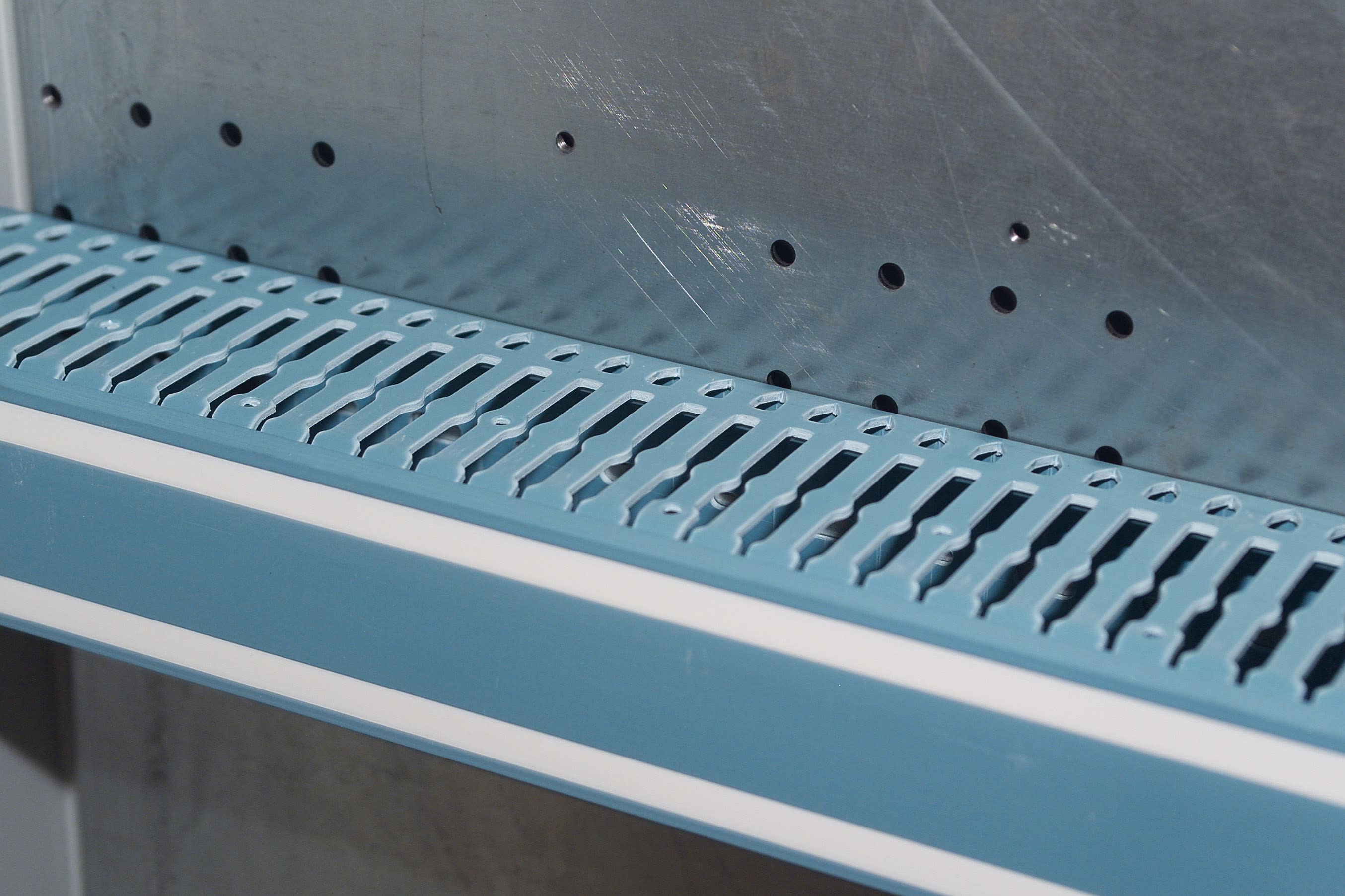Goulotte Lina 25 Bleu PVC - AFNOR2525 Dimensions : - Largeur 25mm- Hauteur 40mm- Perforations latérales au pas de 12,5mm (6/6,5)- Présenté en longueur de 2m Bandes blanches sur couvercle pour repérage par gravure ou écriture au feutre indélébile Conforme à la norme EN 50085-2-3