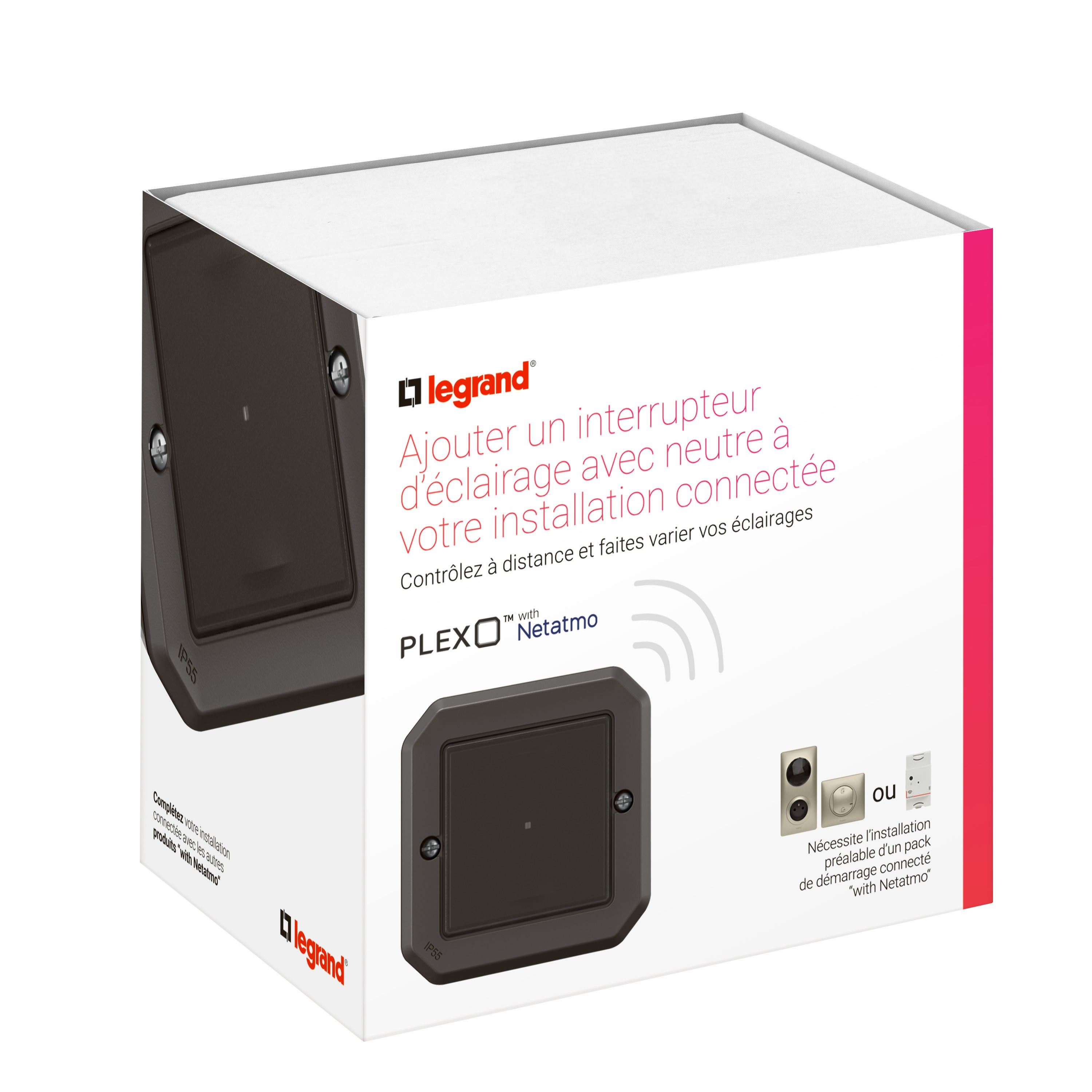 Plexo™ with Netatmo : la version connectée de Plexo™ qui permet de contrôler l'éclairage, les volets roulants et les appareils électriques, manuellement par une commande sans fil, un interrupteur ou via la voix avec les assistants vocaux Home d'Apple, Alexa d'Amazon et Google Home et également à distance par un smartphone avec l'App. Home + Control. La commande générale permet de centraliser les commandes, d'éteindre toutes les lumières, baisser tous les volets... La mise en oeuvre est simple avec un câblage classique et intuitif avec l'appairage des fonctions.