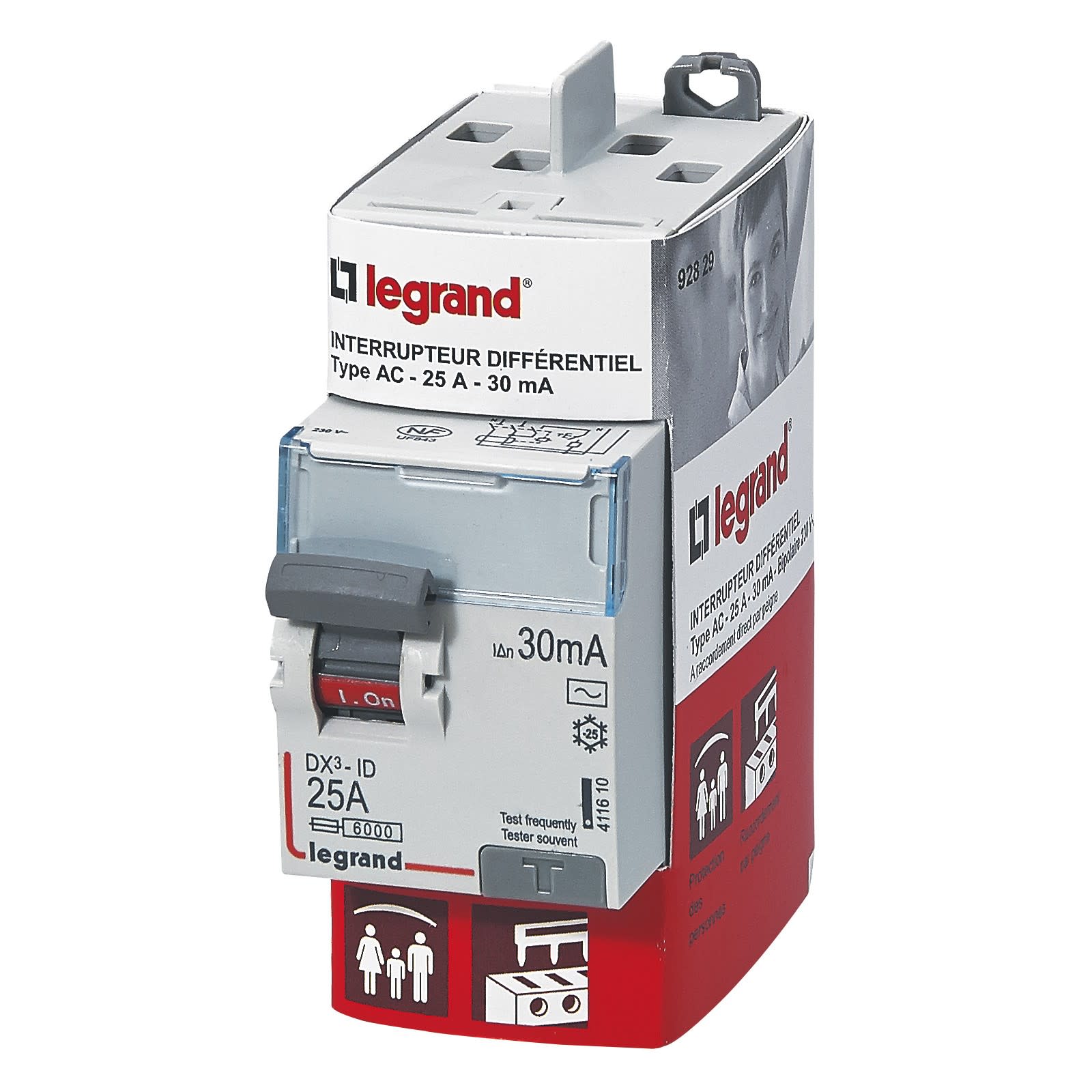 Legrand - Interrupteur différentiel bipolaire - type AC 30mA arrivée haut/départ haut 25A - 092829