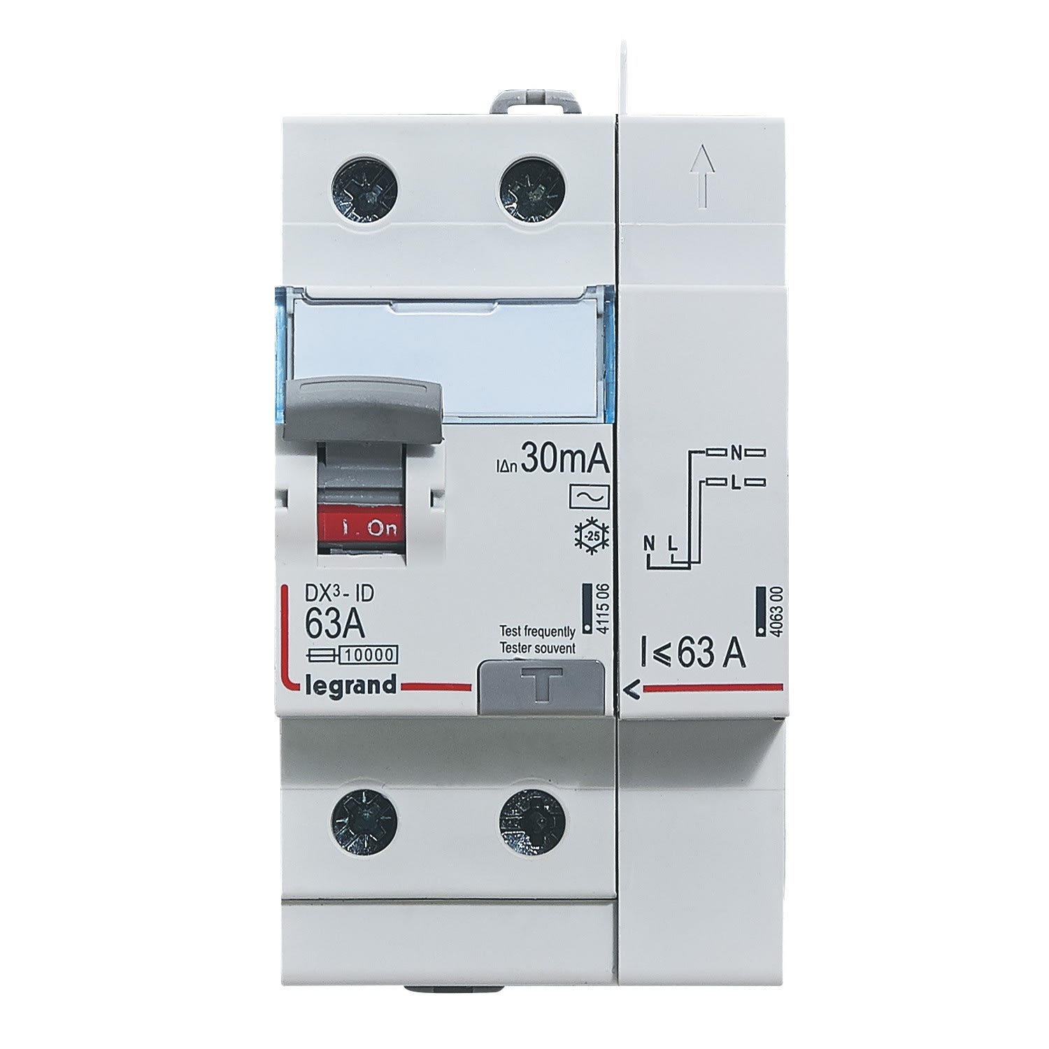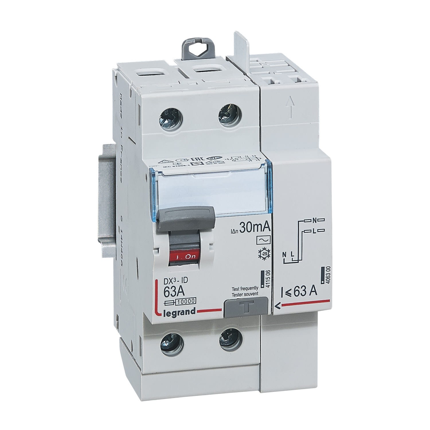 Legrand - Interrupteur differentiel DX3-ID 2P type AC 30mA arrivée haut/départ haut 63A - 092897