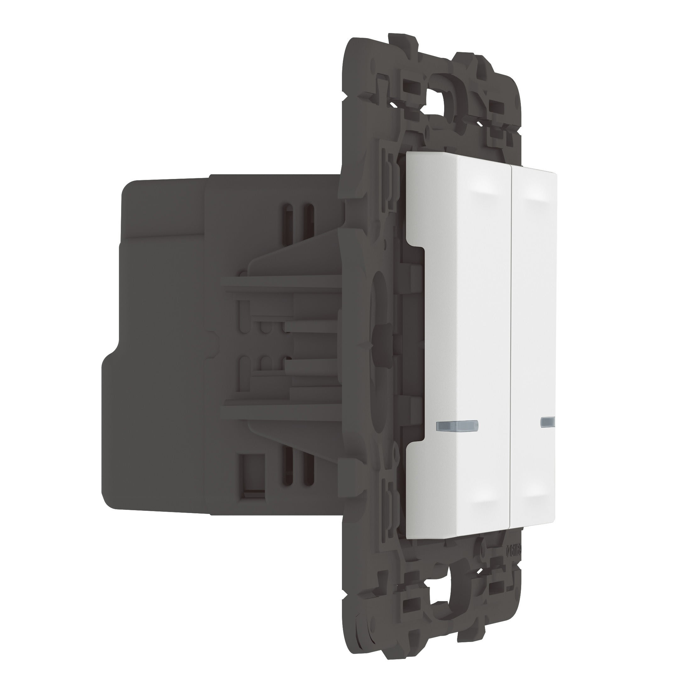 Interrupteur double connecté avec Neutre Mosaic with Netatmo 2x250W pour toutes lampes compatible avec l'App Home + Control - blanc, à équiper de plaques de finition