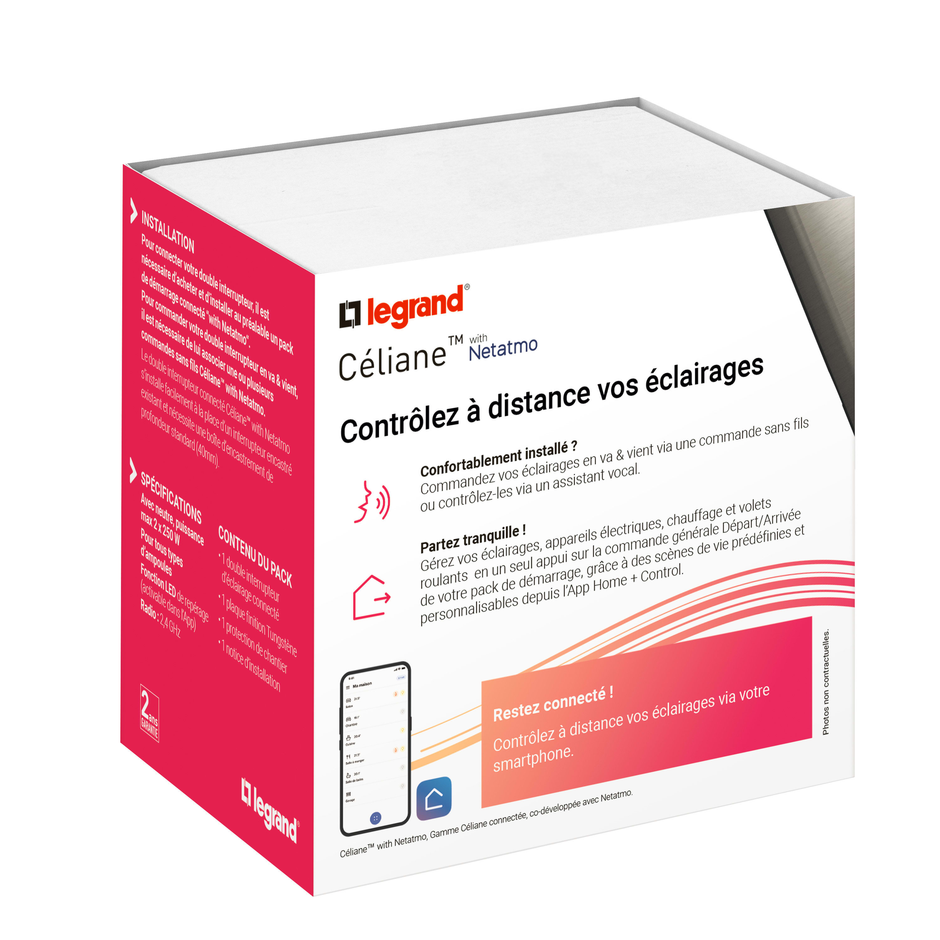 Legrand - Interrupteur double connecte avec Neutre Celiane with Netatmo complet graphite - 199188