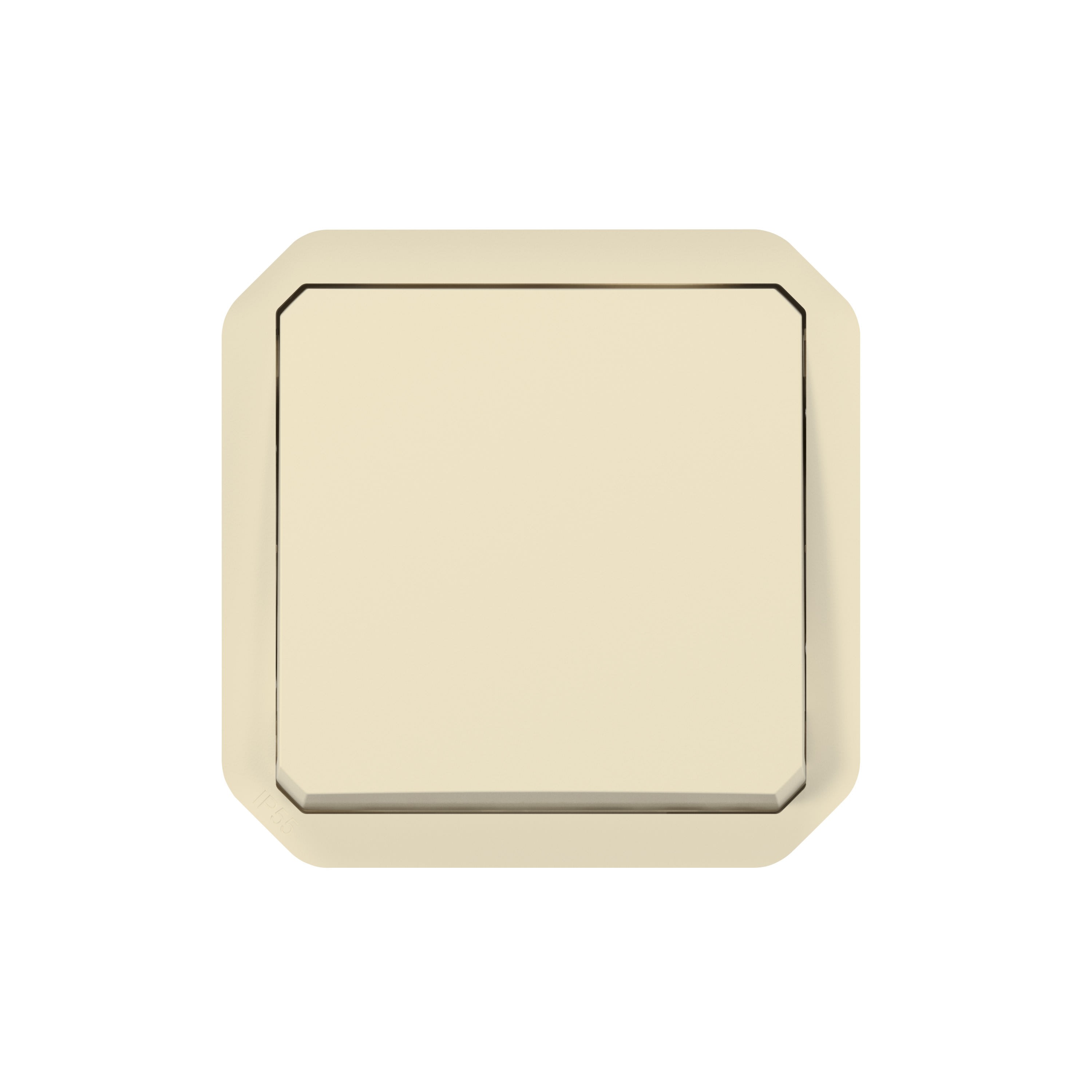 Interrupteur ou va-et-vient 10AX - Connexion rapide sans outil avec repérage couleur Produit à compléter soit avec un boitier saillie, soit avec un support encastré IP55 : protégé contre les poussières et les projections d'eau à la lance de toutes directions IK08 : résistance à un choc de 5 joules