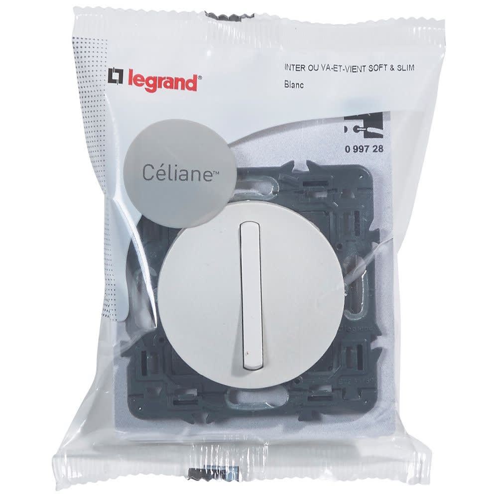 Legrand - Interrupteur ou va-et-vient doigt étroit Céliane Soft 10A - blanc avec support - 099728