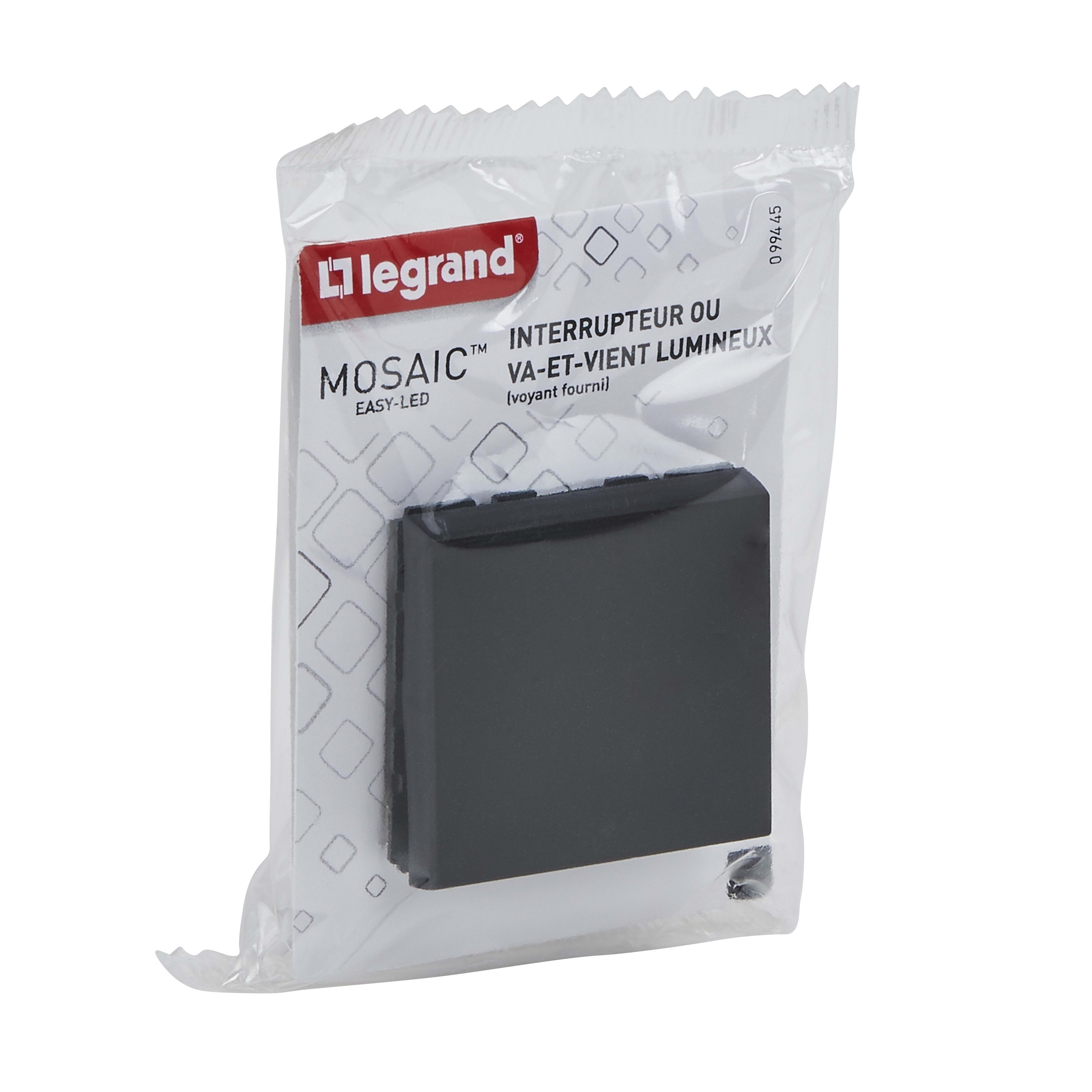 Legrand - Interrupteur ou va-et-vient lumineux voyant Mosaic Easy-Led 10A 2 modules - noir - 099445