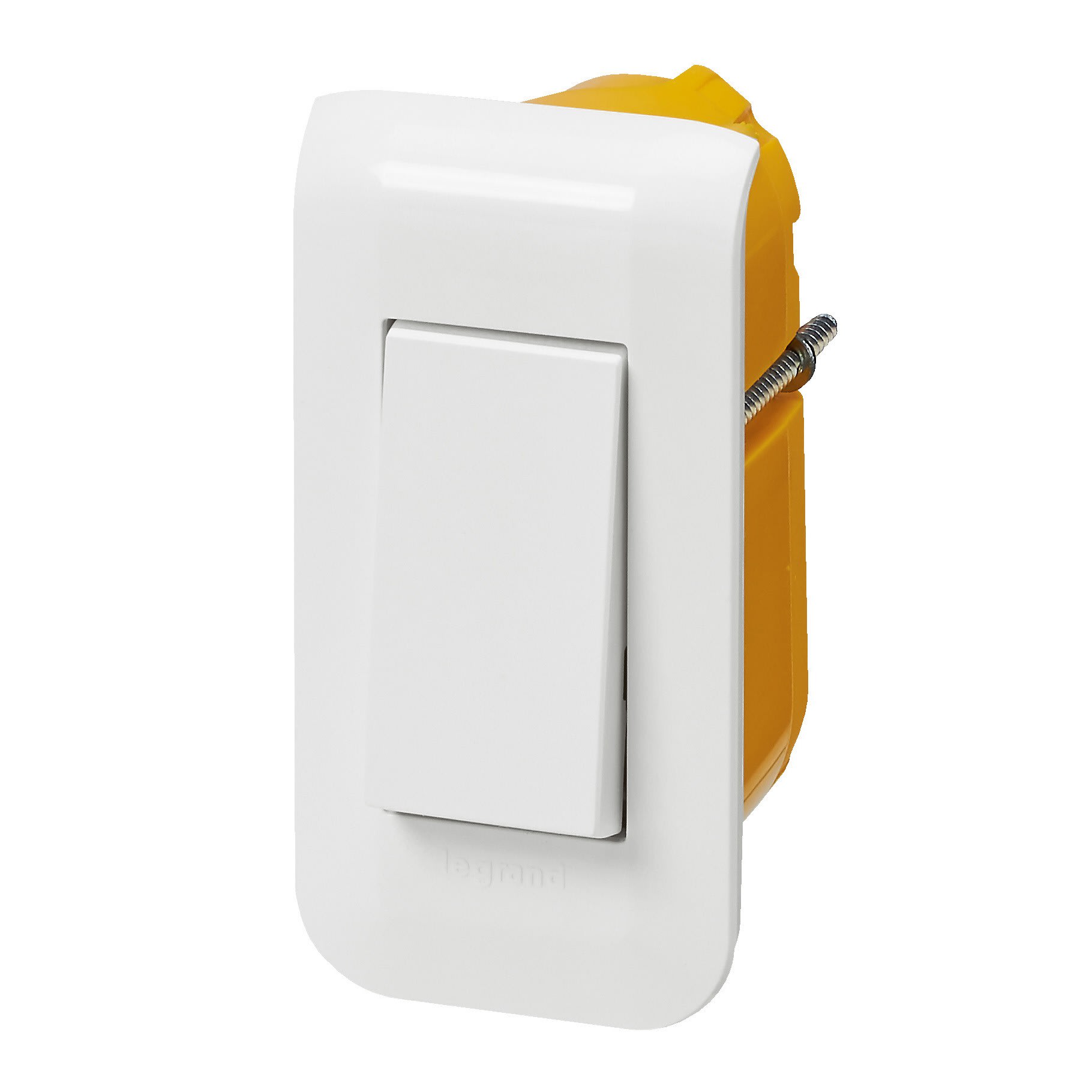 Legrand - Interrupteur ou va-et-vient Mosaic 10A étroit + plaque+ boite à encastrer -blanc - 200076