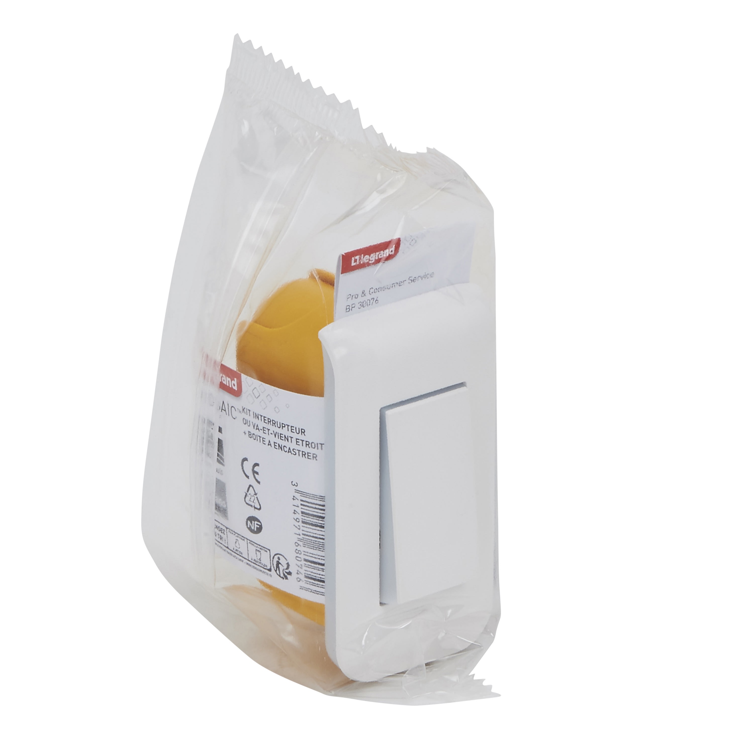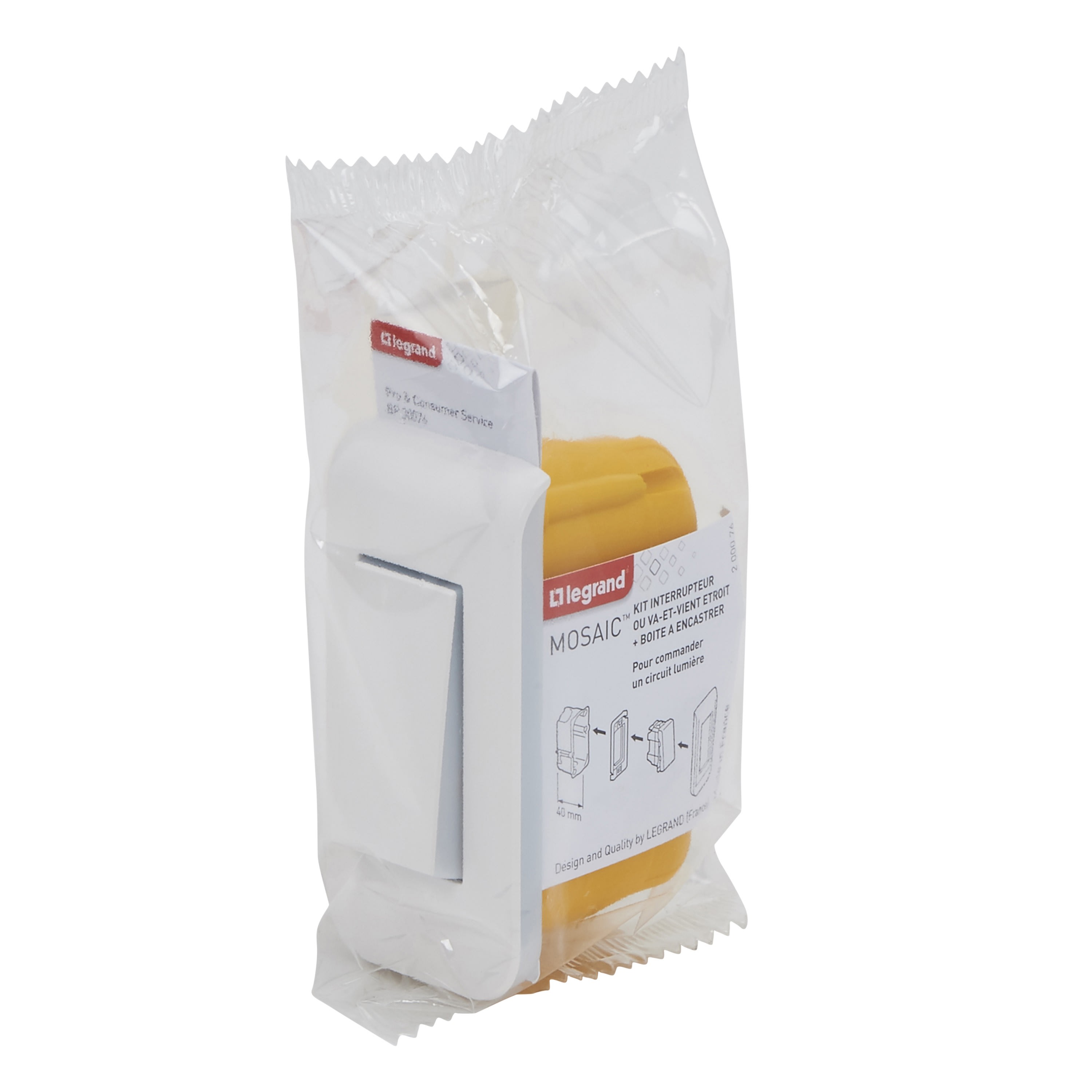 Kit interrupteur ou va-et-vient étroit Mosaic 10A Mosaic avec boite d'encastrement 1 module et plaque de finition blanc - prêt à installer