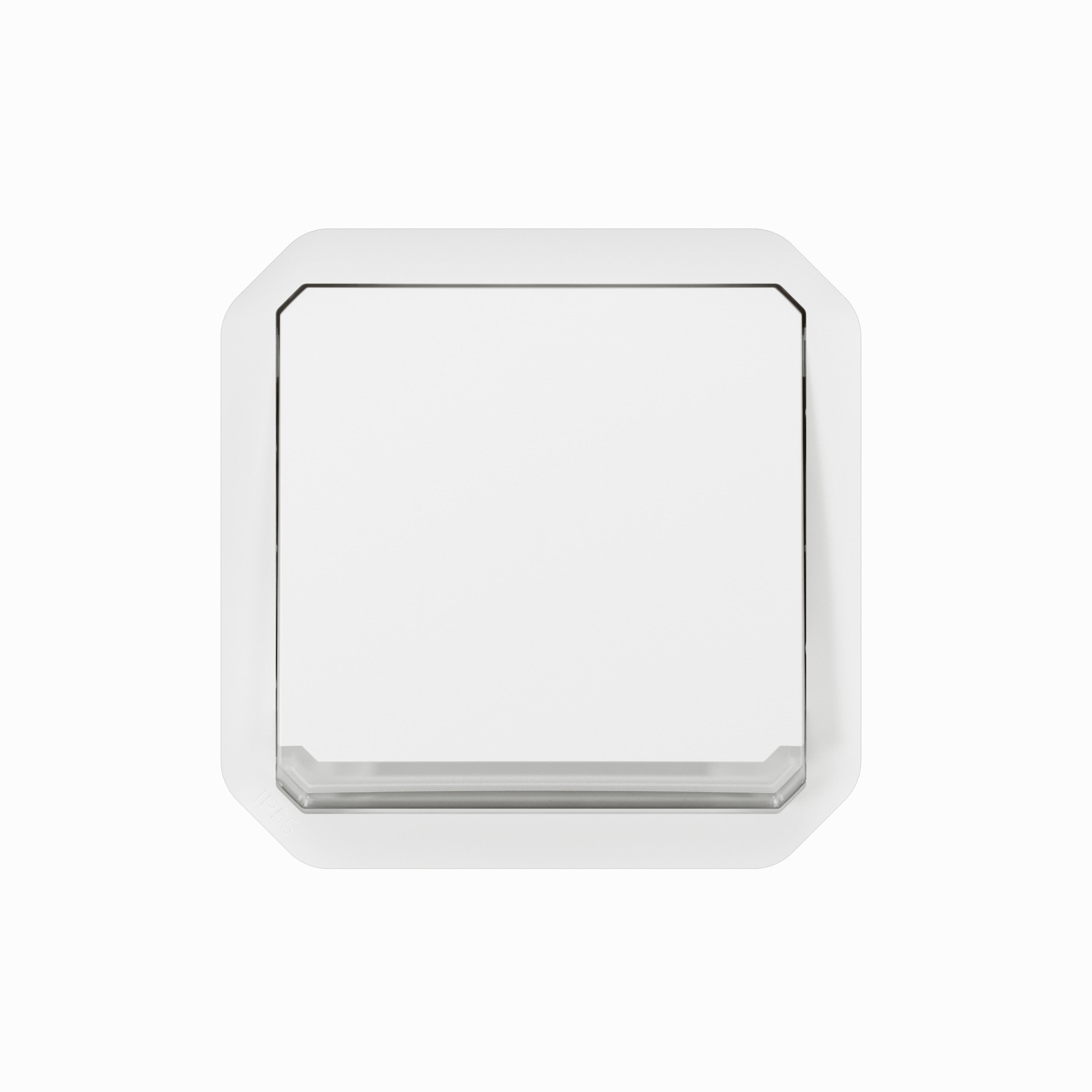 Interrupteur ou va-et-vient 10AX - Connexion rapide sans outil avec repérage couleur Produit à compléter soit avec un boitier saillie, soit avec un support encastré IP55 : protégé contre les poussières et les projections d'eau à la lance de toutes directions IK08 : résistance à un choc de 5 joules