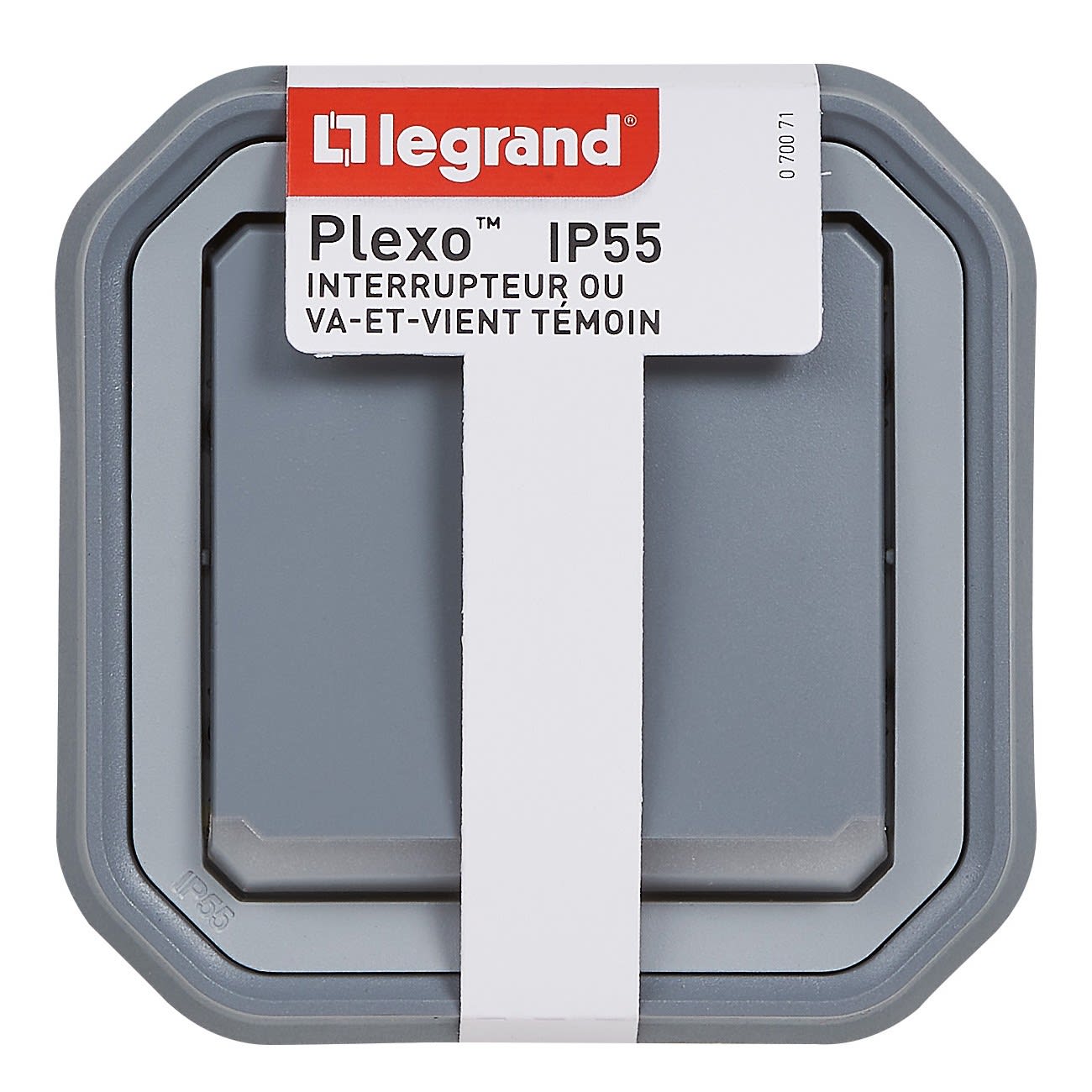 Legrand - Interrupteur ou va-et-vient témoin Plexo complet encastré et griffes - gris - 070071
