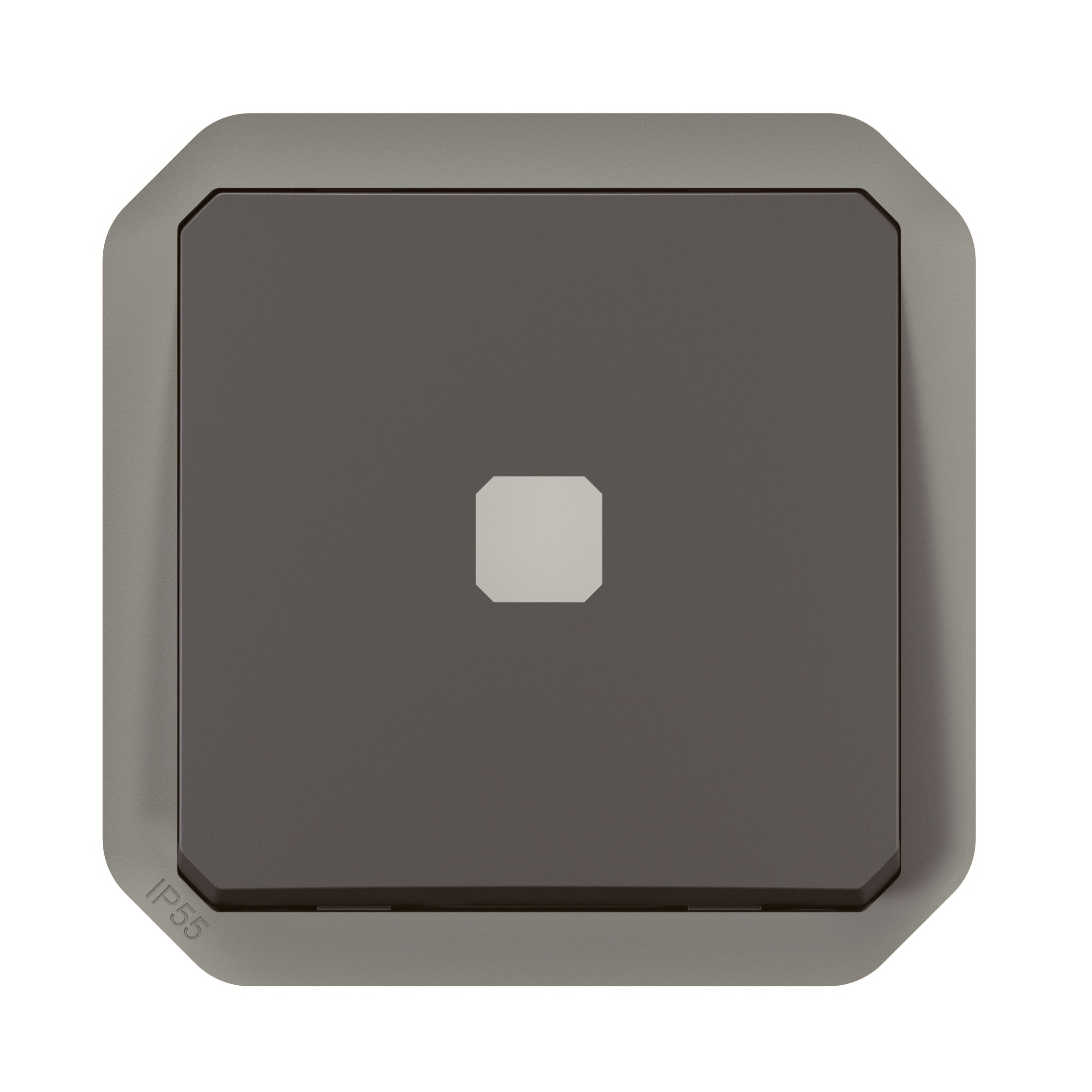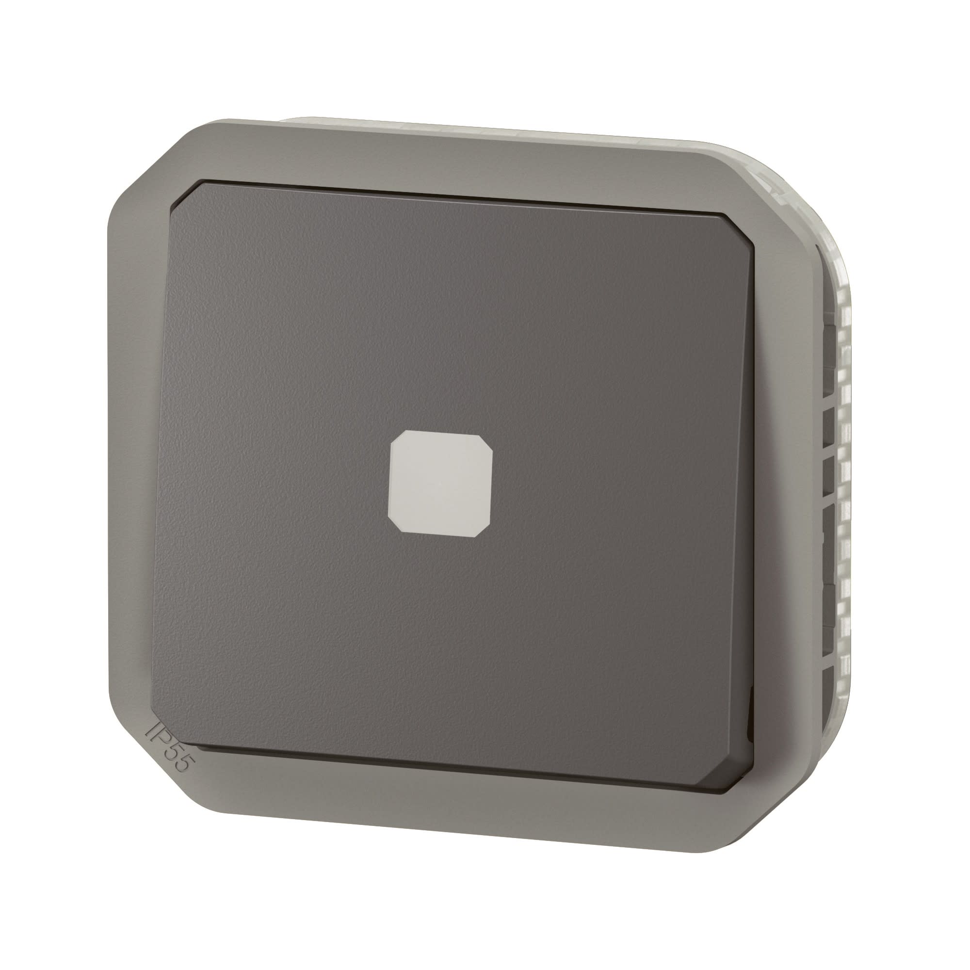 Interrupteur temporisé lumineux câblage 2 fils sans Neutre étanche Plexo 230V 50Hz à 60Hz IP55 IK05 avec temporisation réglable, à équiper de support plaque ou boîtier saillie, livré avec enjoliveur finition anthracite