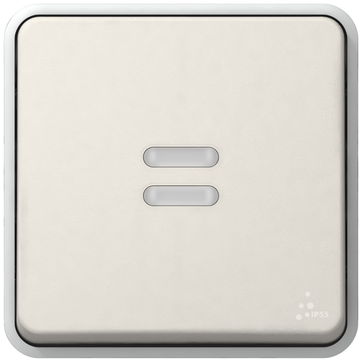 Interrupteur temporisé lumineux Plexo composable IP55 230V 50Hz ou 60Hz livré avec enjoliveur blanc, à équiper d'un boîtier saillie ou d'une plaque support pour montage en encastré
