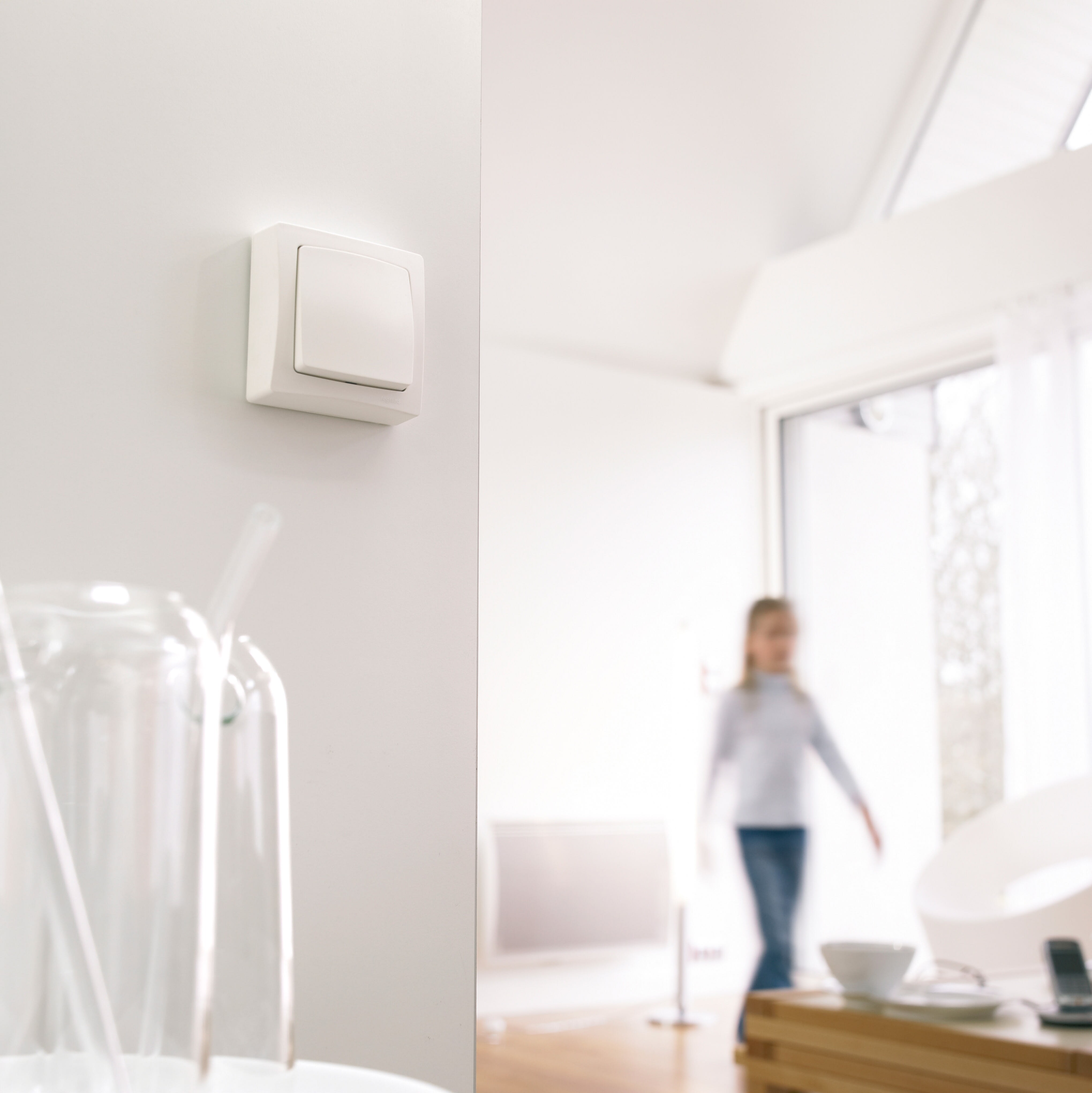 L'appareillage saillie, idéal pour la rénovation, propose des mécanismes composables ou complets. La finition blanche permet de s'intégrer facilement sur tous les murs. La gamme propose des fonctionnalités essentielles pour la maison : commandes (interrupteurs, poussoirs, interrupteur variateur, commandes de VMC et de volet roulant), prises de courant, téléphone, télévision, informatique, boîtes de dérivation et sortie de câbles etc. Des cadres permettent le montage d'appareillage dans les moulures et plinthes DLPlus ou le long des moulures pour rajouter des prises ou des commandes.