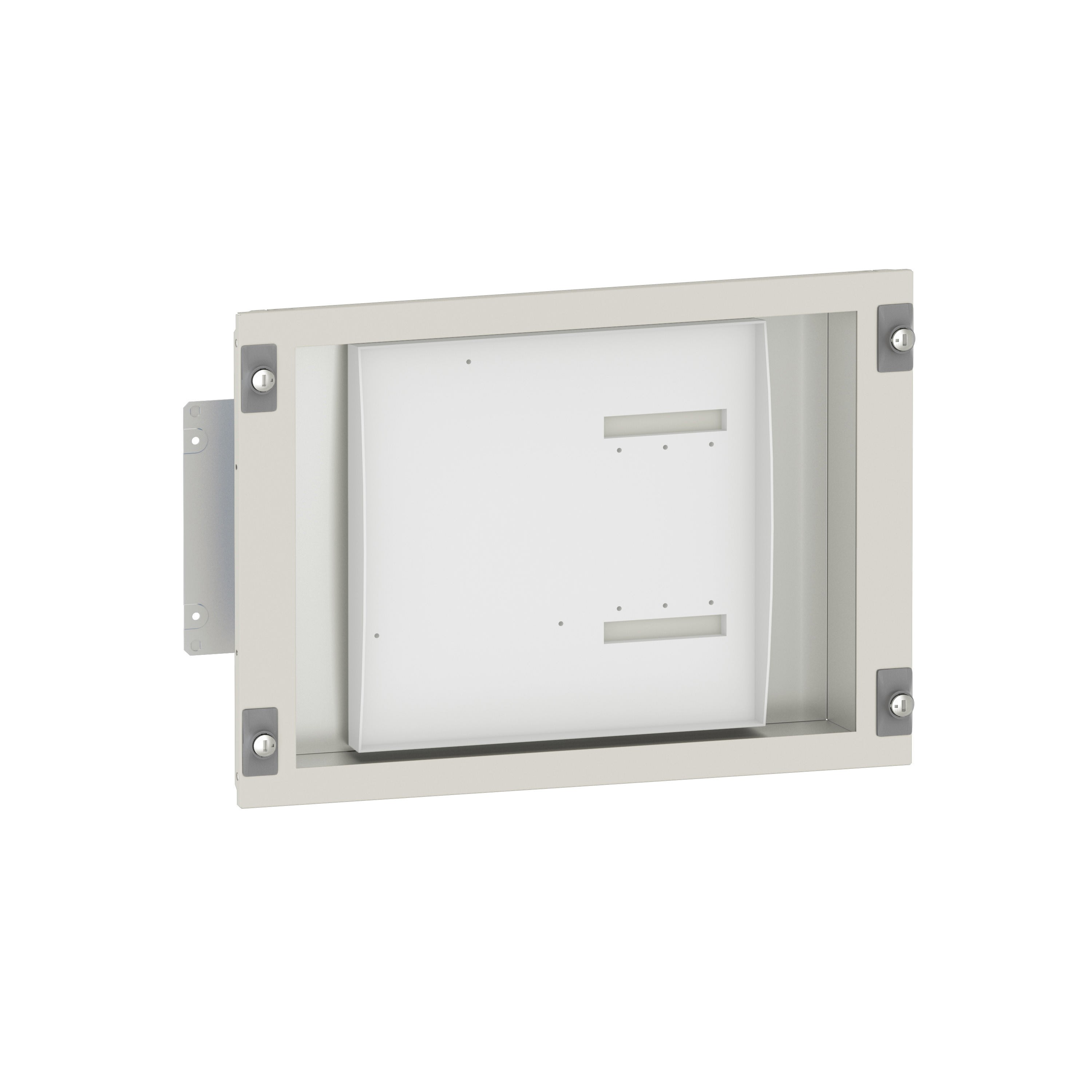 Livré avec : 1 platine d'abonné, 1 plastron dédié hauteur 400mm Plastron métal équipé de 1/4 tour plombables à 2 positions (ouvert, fermé) Revêtement polyester époxy RAL7035