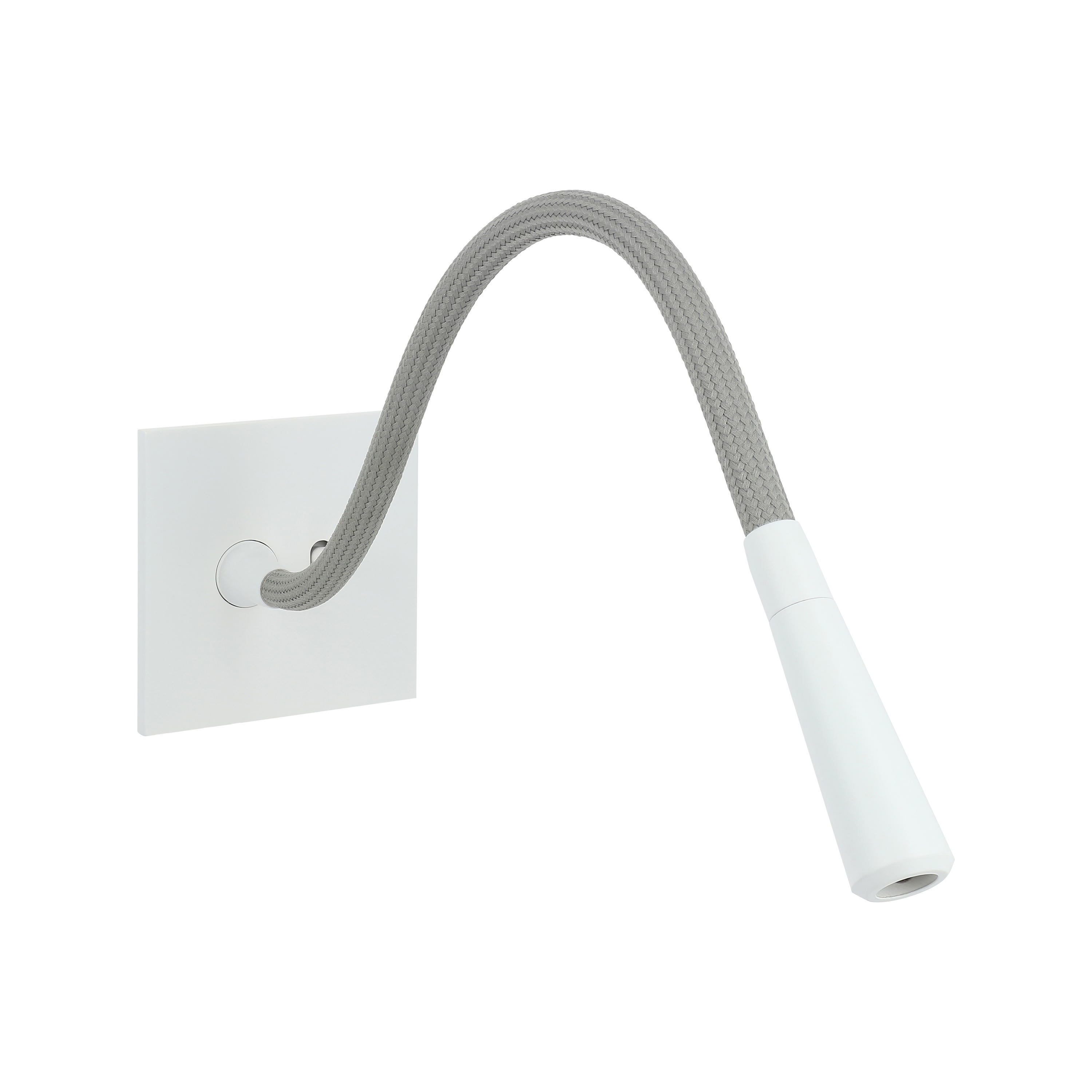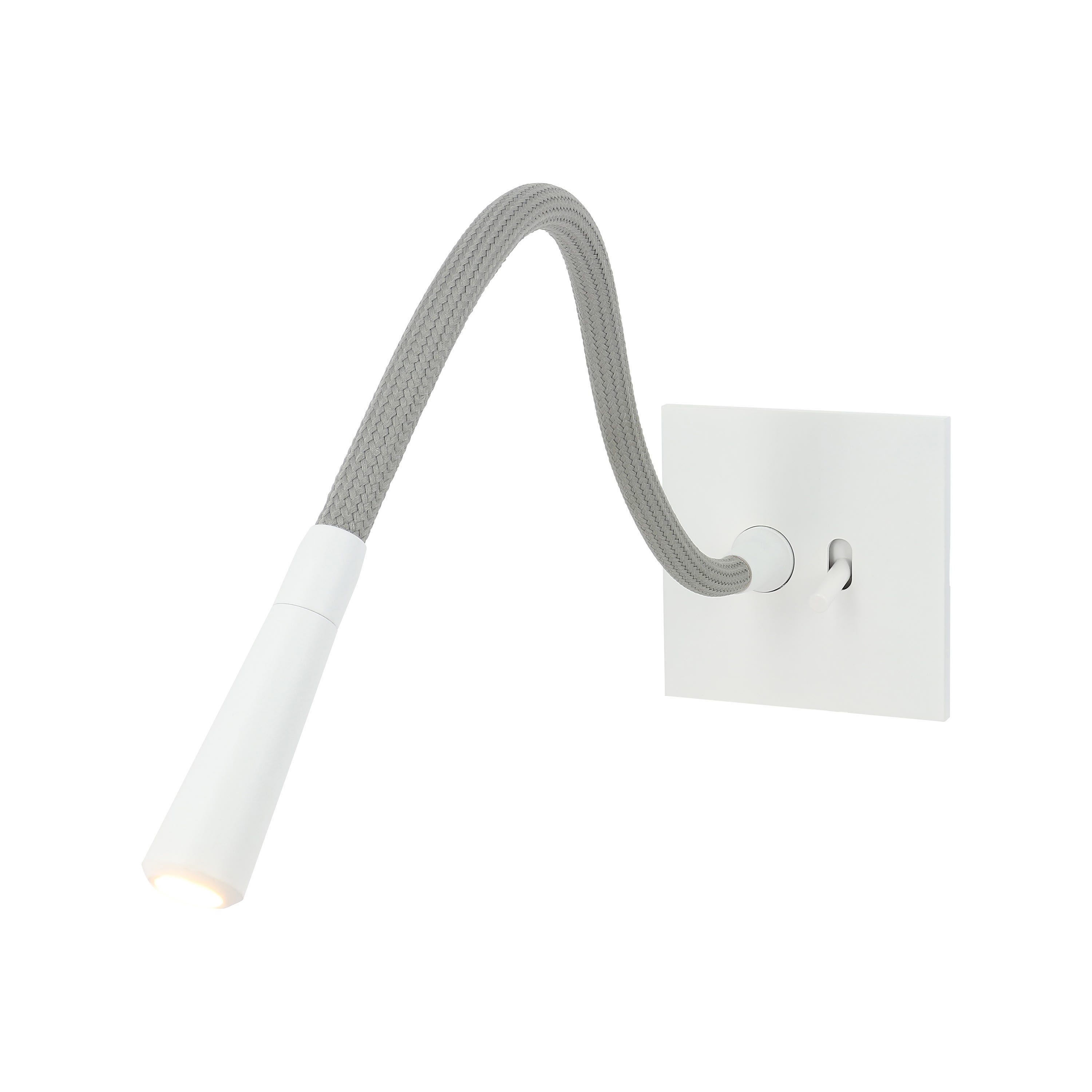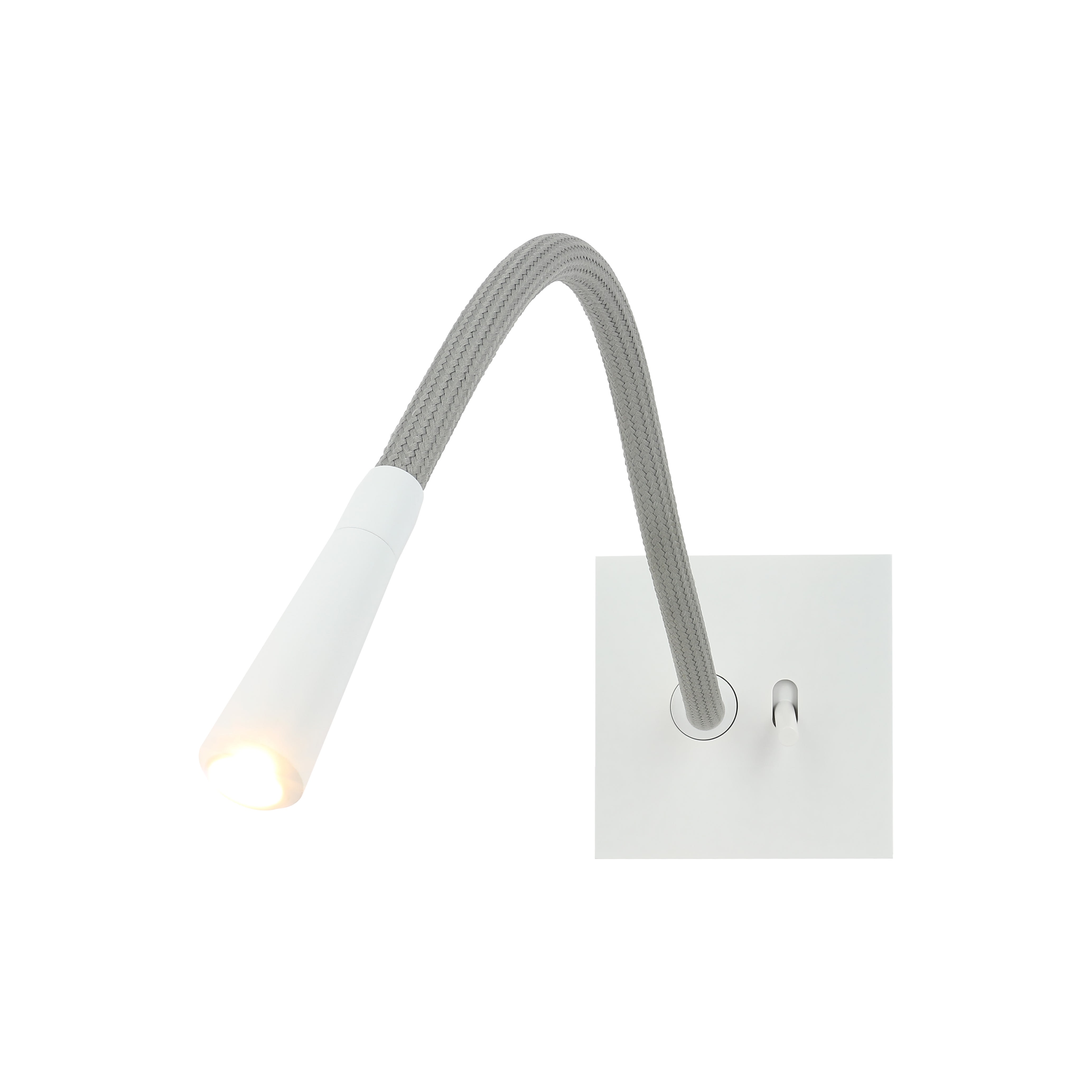 Liseuse à LED 1W blanc chaud (3000K) Art d'Arnould Univers Epure Blanc satin Avec 1 va-et-vient à levier cylindrique pour le pilotage de la liseuse Equipée d'un flexible qui permet l'orientation de la tête et d'un va-et-vient pour la commande (longueur du flexible 300mm) - Levier blanc Dimensions grand carrée 80x80mm - Se monte dans boîte d'encastrement 1 poste profondeur 50mm