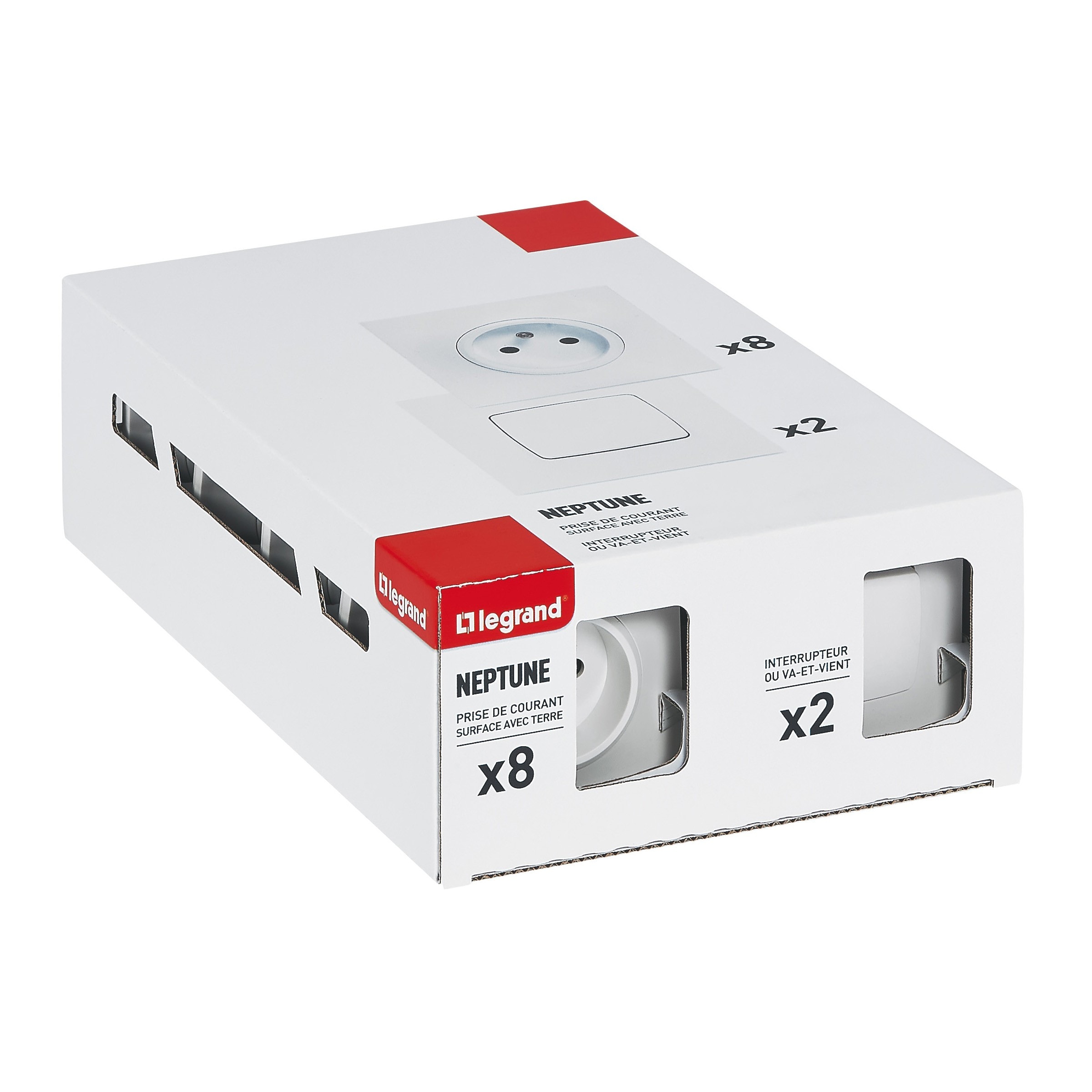 Legrand - Lot 2 interrupteurs ou va-et-vient + 10 prises de courant Neptune - blanc - 200251