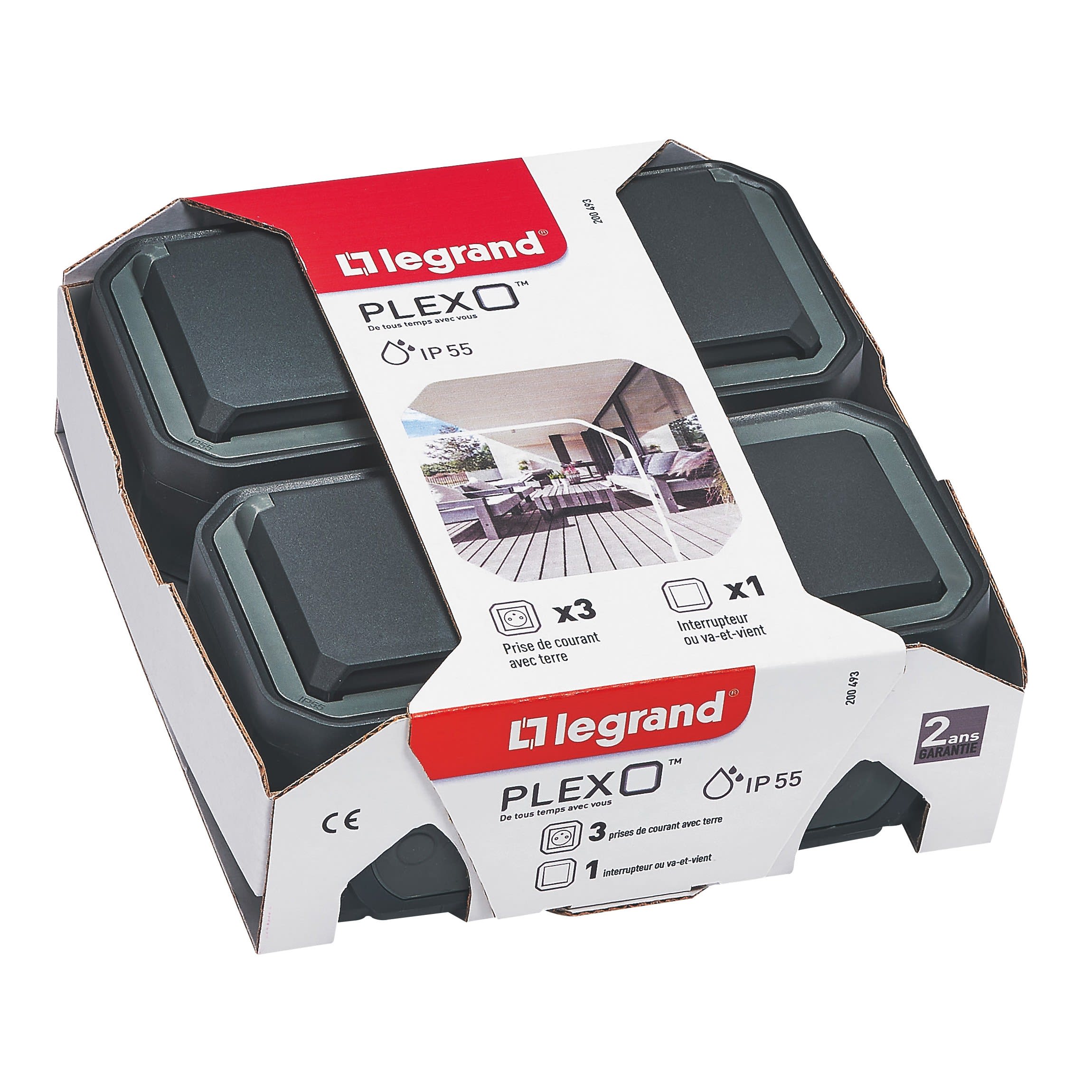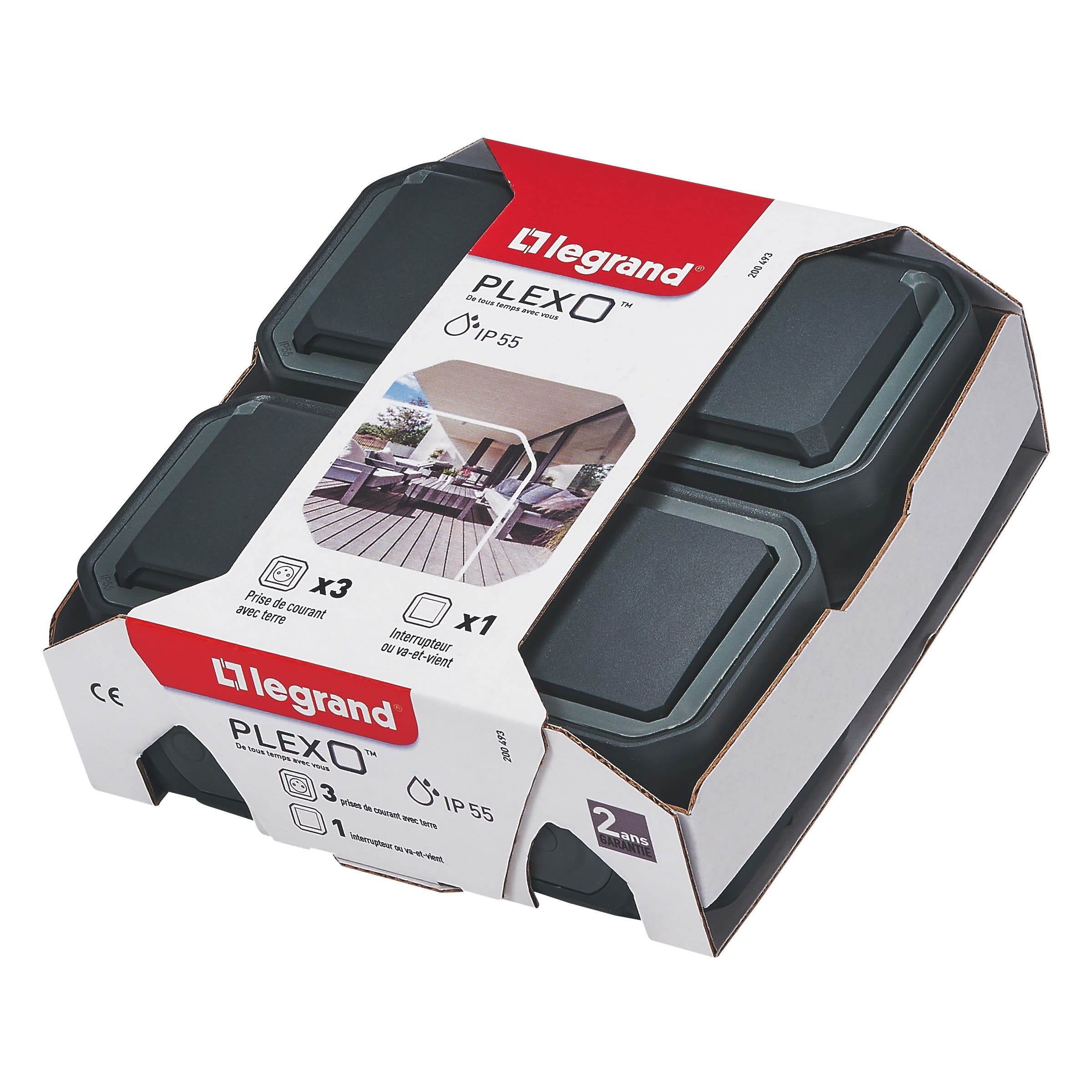 Legrand - Lot de 1 va-et-vient + 3 prises de courant Plexo complet saillie - anthracite - 200493