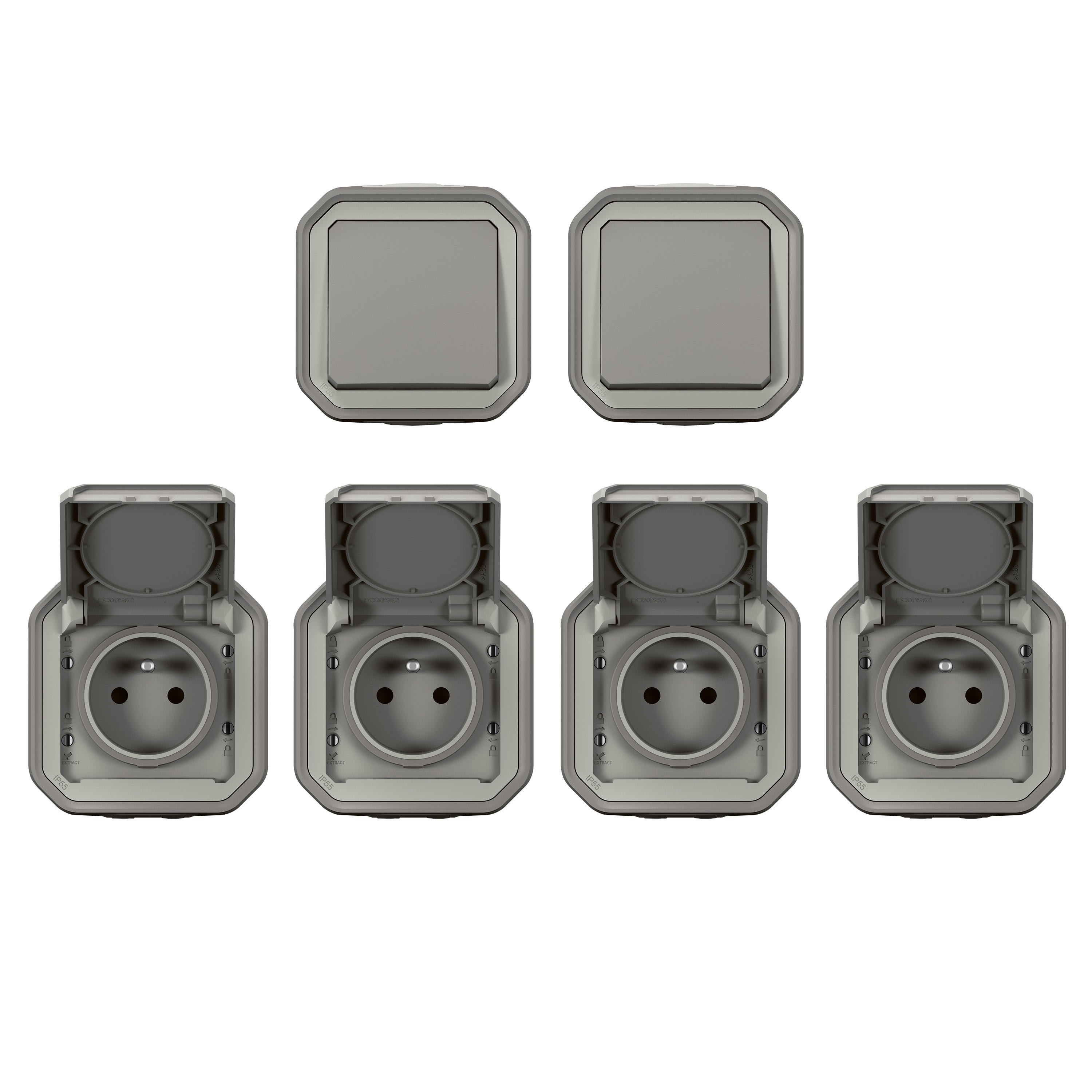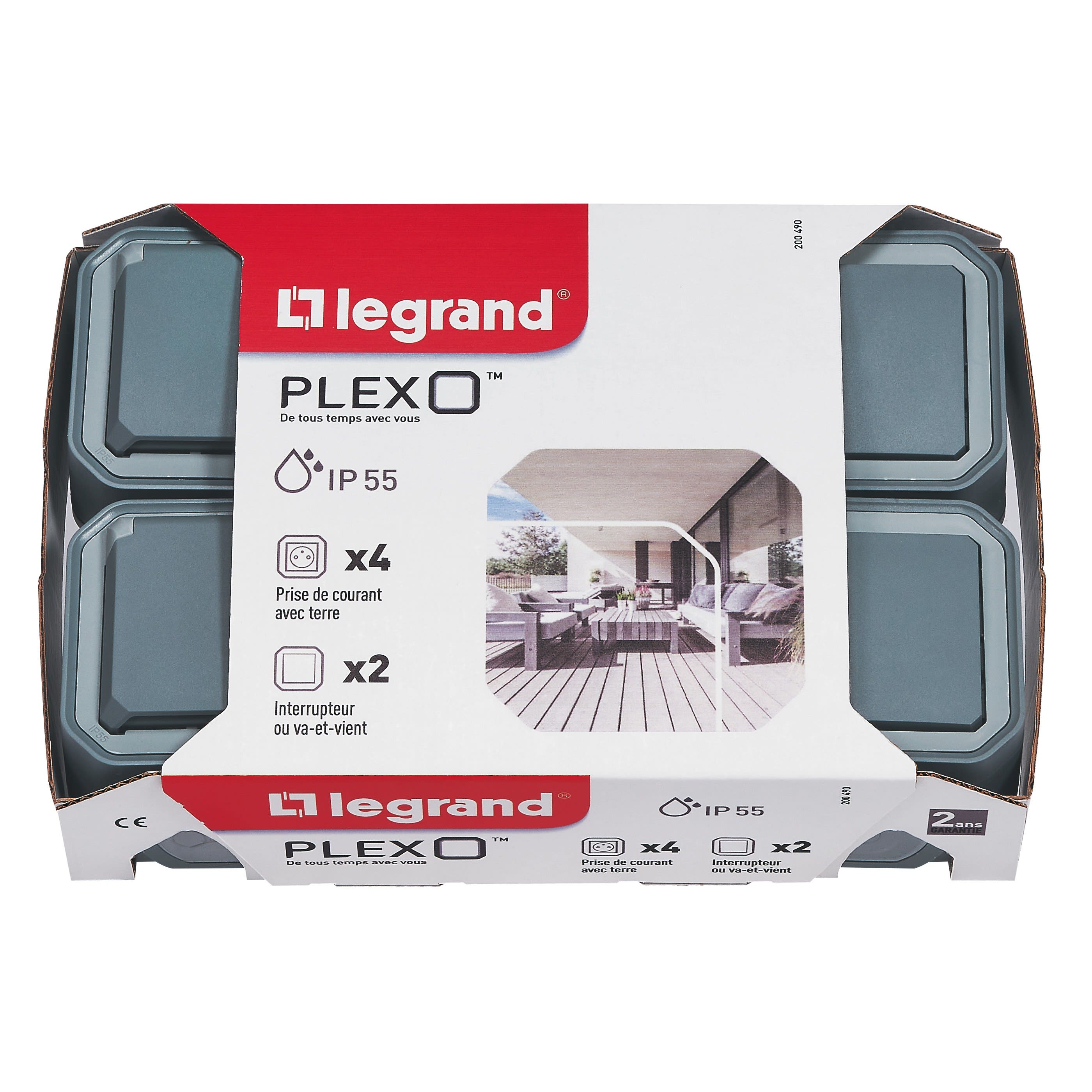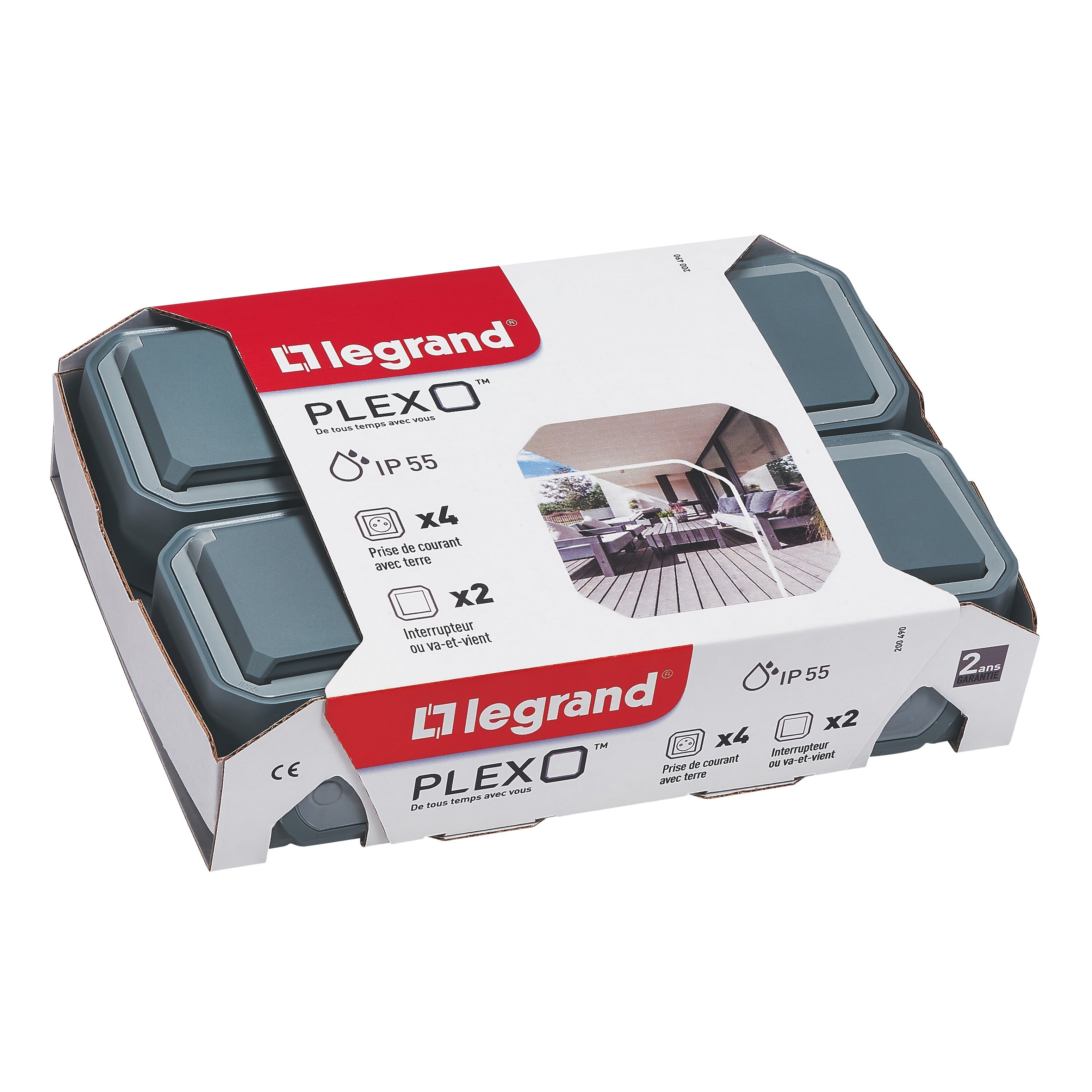 Legrand - Lot de 2 va-et-vient + 4 prises de courant Plexo complet saillie - gris - 200490