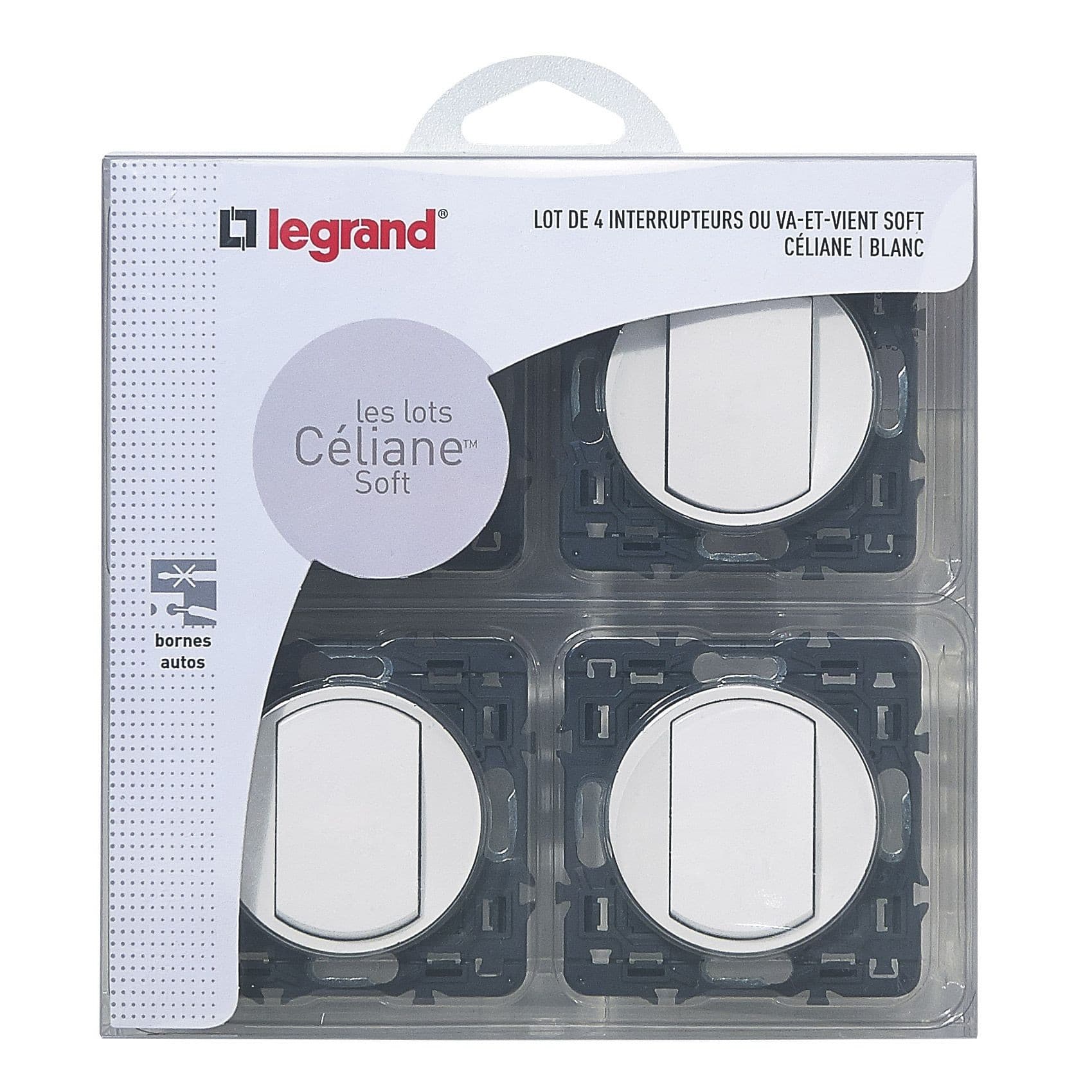 Legrand - Lot de 4 interrupteurs ou va-et-vient Céliane Soft - blanc - 200262