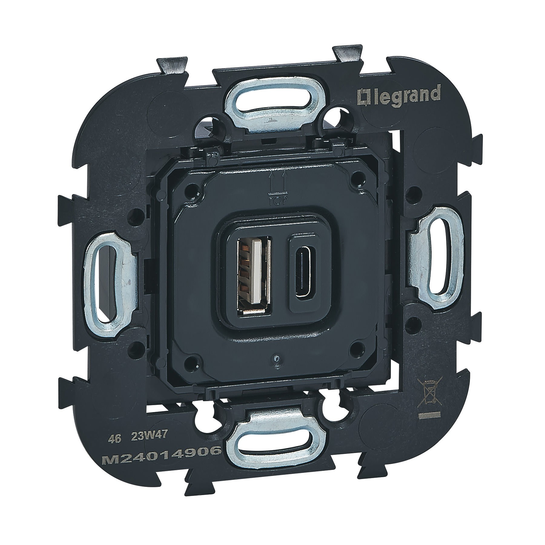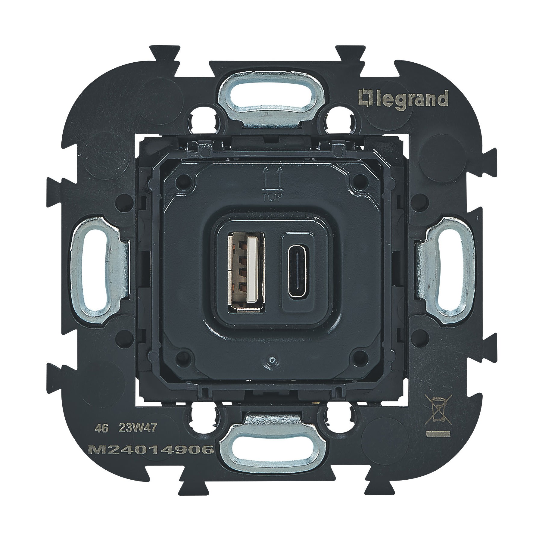 Legrand - Mécanisme Double Prise Chargeur USB Type A+C 3A 15W 1 Poste - Art d'Arnould - ARM67049