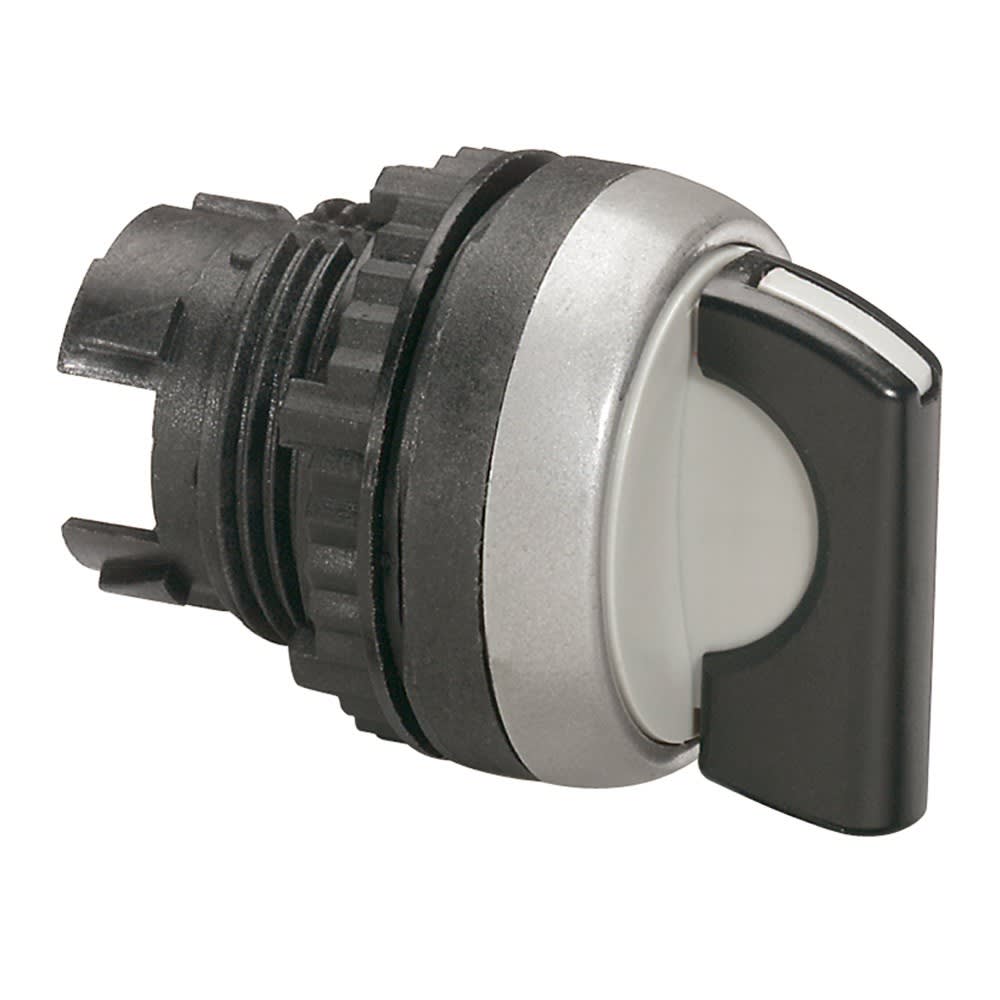 Bouton tournant non lumineux Osmoz composable A manette - Noir - 2 positions fixes (0 à 12h) - 45° IP69 Equipé d'une bague de serrage Conforme à la norme IEC 60947-5-1