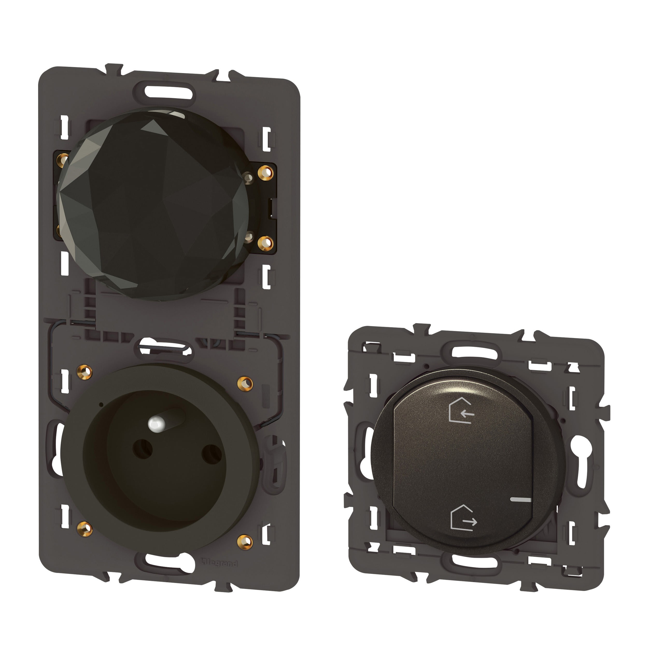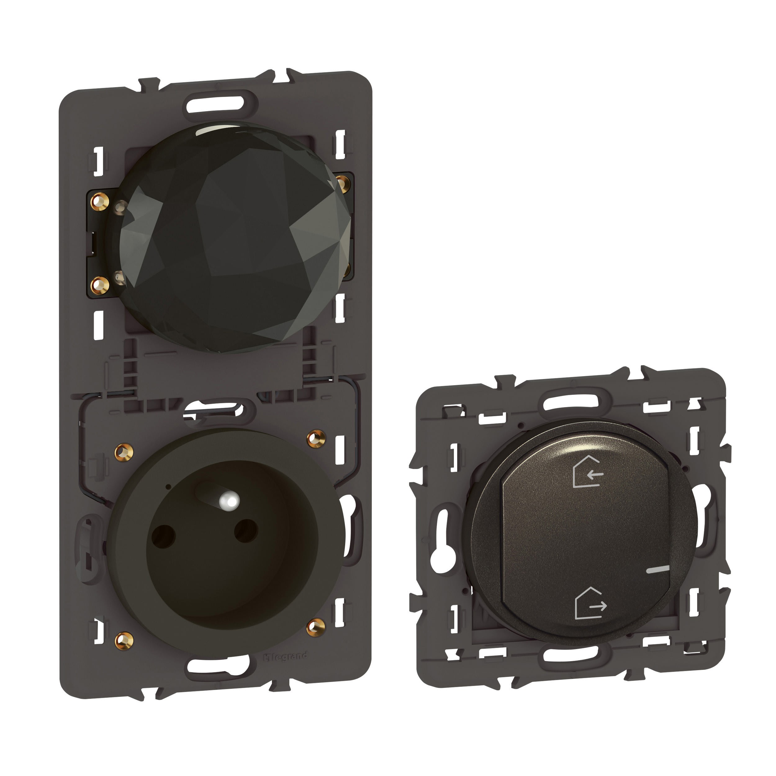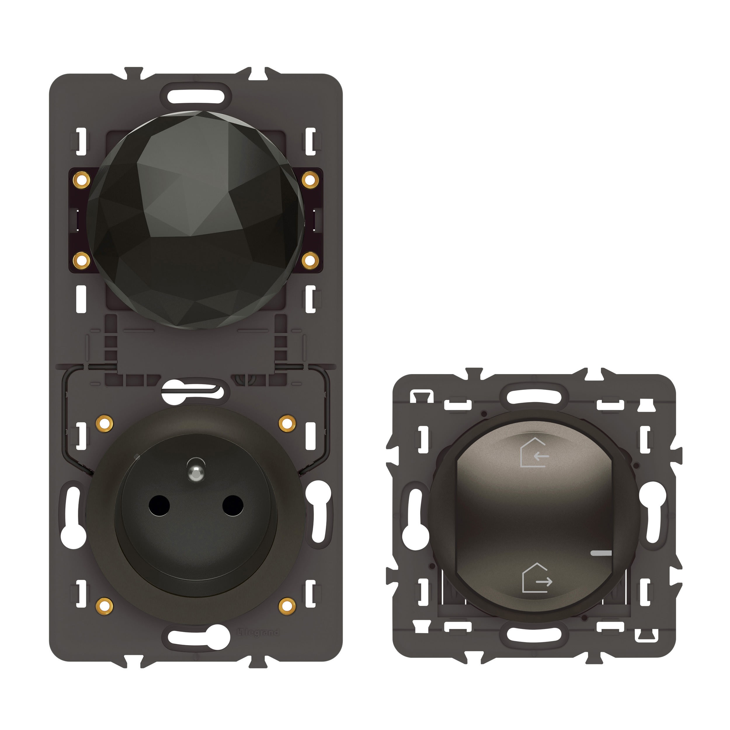 Pack de démarrage pour installation connectée Céliane with Netatmo composé de 1 prise Control et 1 commande sans fils Départ/Arrivée compatible avec l'App Home + Control - avec enjoliveurs finition graphite, à équiper de plaques de finition