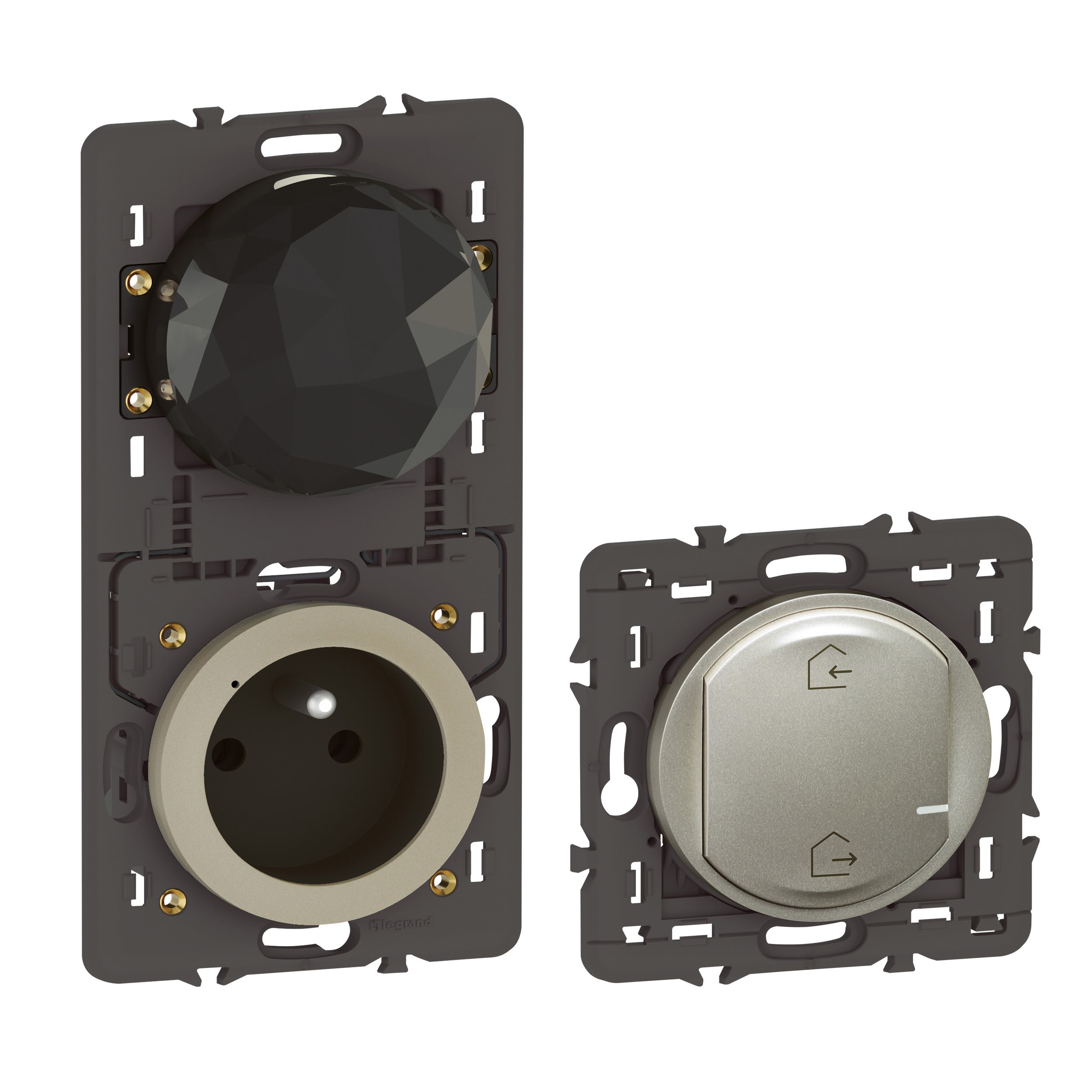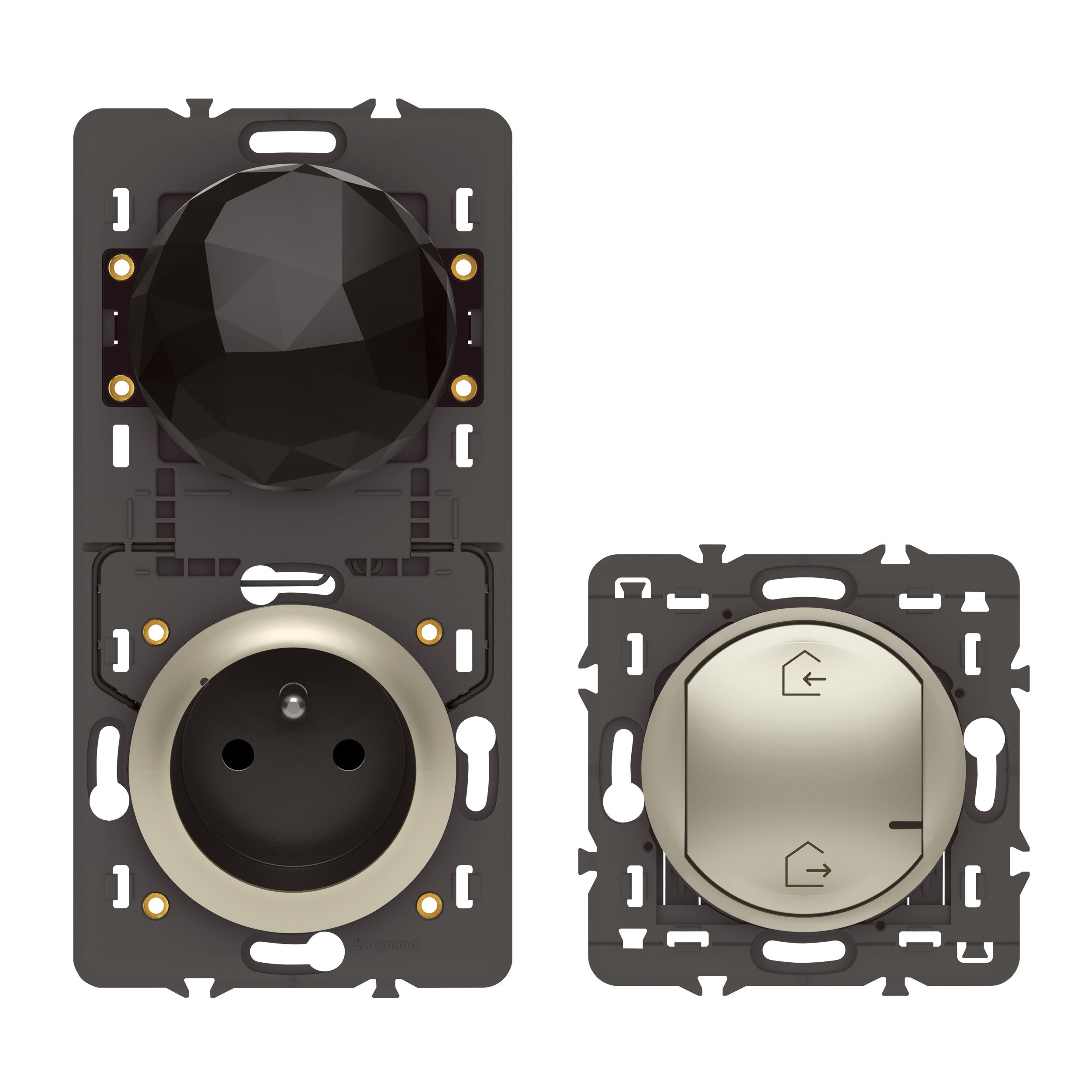 Prise Control : mesure la consommation électrique instantanée et cumulée- Protège contre les surcharges, coupure à 16A maximum- Compatible avec tout appareil électrique et gros électroménager- Voyant LED avec fonction de repérage activable dans l'App.- WiFi 2,4 GHz 802.11 b/g/n Commande générale sans fils Départ/Arrivée : Scénarios Départ/Arrivée prédéfinis et personnalisables depuis l'App. Home + Control - Livrée avec une pile remplaçable d'une durée de vie de 8 ans - Voyant LED avec indicateur de batterie faible L'installation de la prise Control se fait facilement en lieu et place d'une prise standard existante dans une boîte 1 poste de profondeur 40mm avec ou sans griffes La commande générale départ/arrivée sans fils est fournie avec une pile d'une durée de vie de 8 ans - Cette pile est changeable - Une alerte de fin de vie de pile est disponible dans l'application Titane