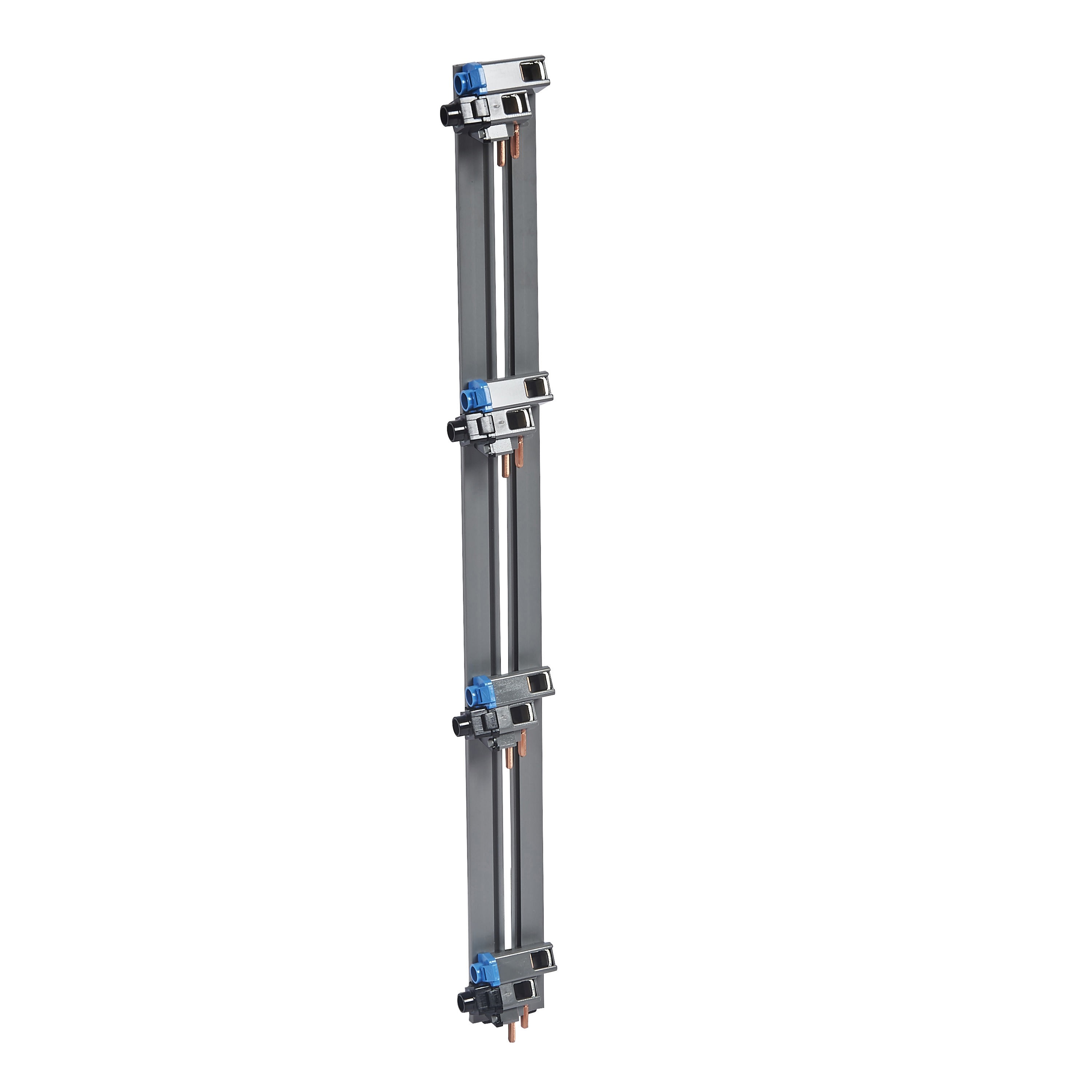 Peigne vertical pour montage dans coffrets 4 rangées Drivia 13 et 18 modules Intensité maximum 63A Entraxe 125mm Sans repiquage Parfaitement adapté aux applications logement et petit tertiaire