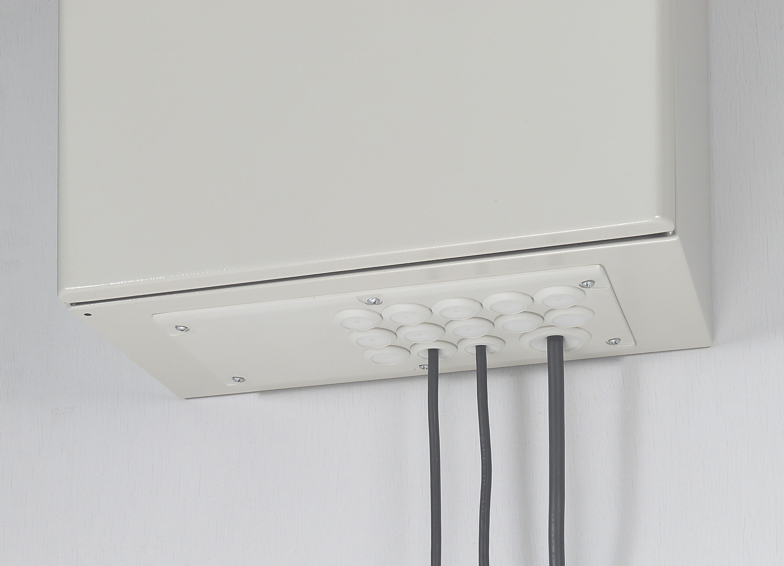 Plaque Cabstop IP55 - passe-câbles 13 entrées Ø5mm à Ø14mm et 1 entrée Ø14mm à Ø24mm avec 1 réserve Polypropylène ignifugé RAL7035 Entrée de câble constituée d'une mâchoire serre-câble assurant la tenue mécanique et de zones élastomères assurant l'étanchéité - Epouse parfaitement le câble Livrée avec :- bouchons de condamnation permettant d'obturer une entrée percée, tout en garantissant l'IP55- outils de débrayage du câble