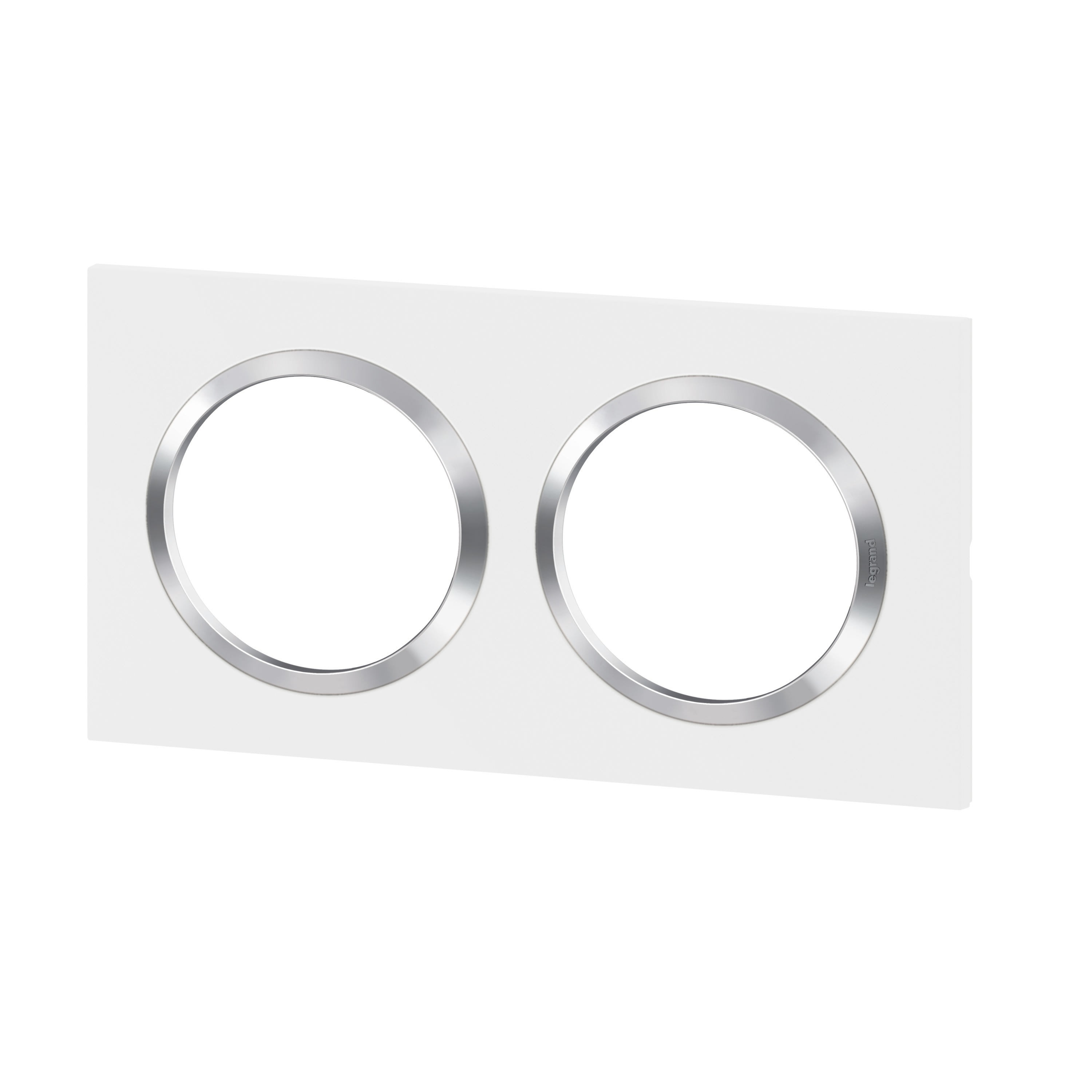 Legrand - Plaque carrée dooxie 2 postes finition blanc avec bague effet chrome - 600842