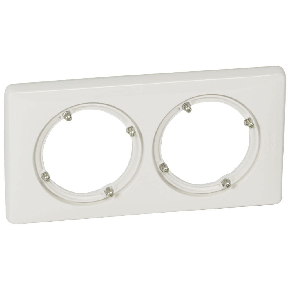 Plaque de couleur Céliane 2 postes IP44, pour locaux humides Finition Blanc Montage horizontal ou vertical A associer à un support universel Batibox, un mécanisme et un enjoliveur Céliane