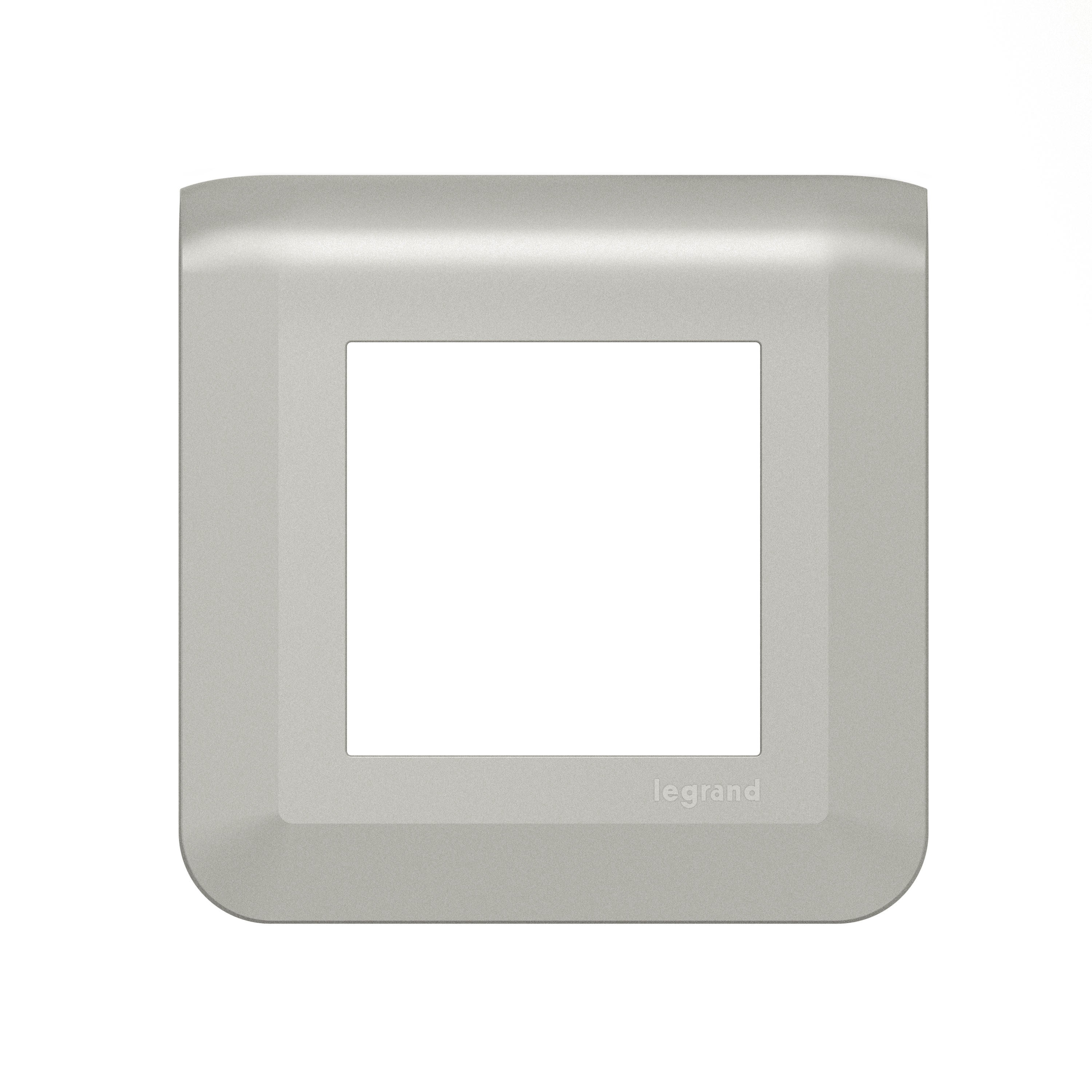 Plaque de finition Mosaic 2 modules couleur aluminium à clipser sur support Batibox 2 modules - démontage facile et rapide grâce à la présence d'encoches - nouveau design à large chanfrein